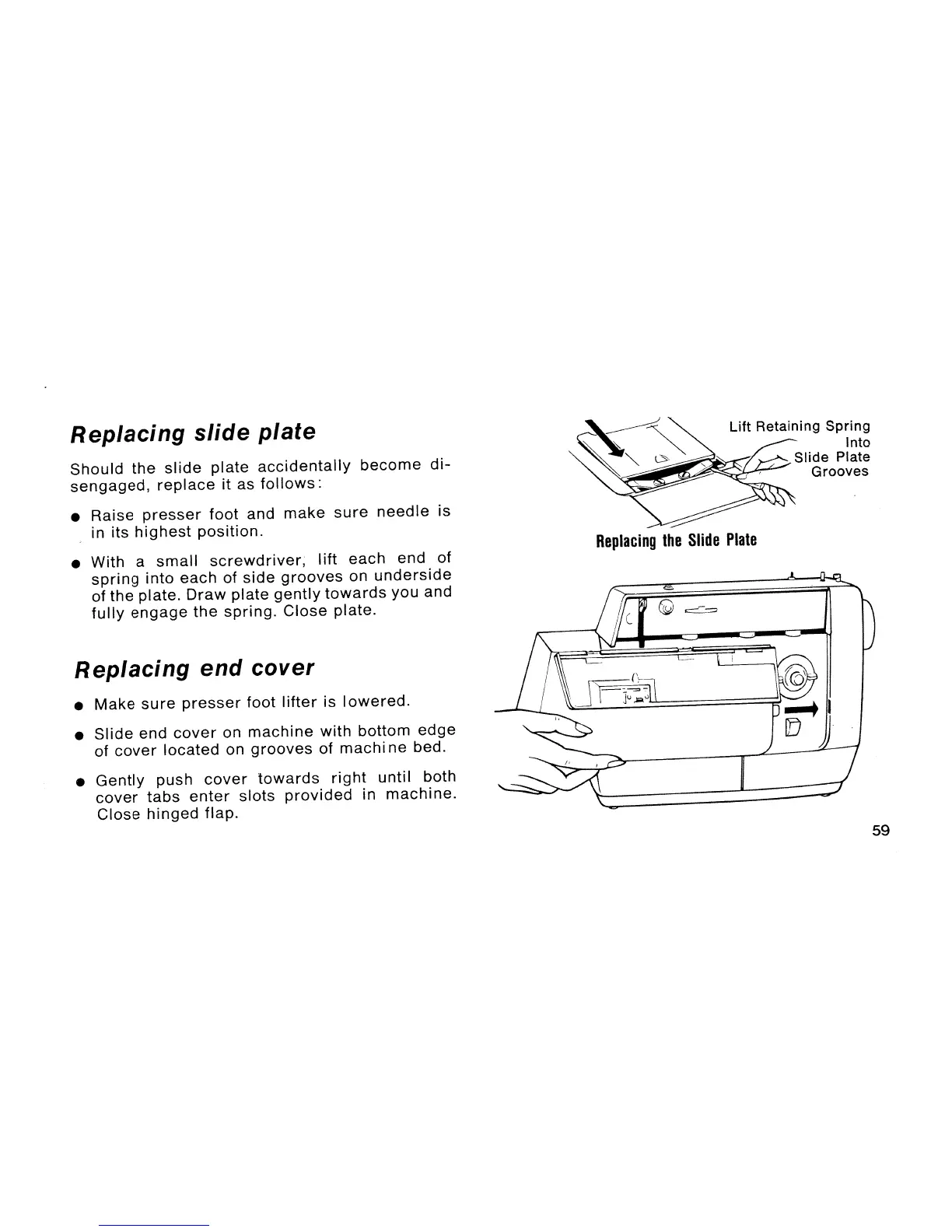Singer Starlet 495 - Replacing Slide Plate; Replacing End Cover