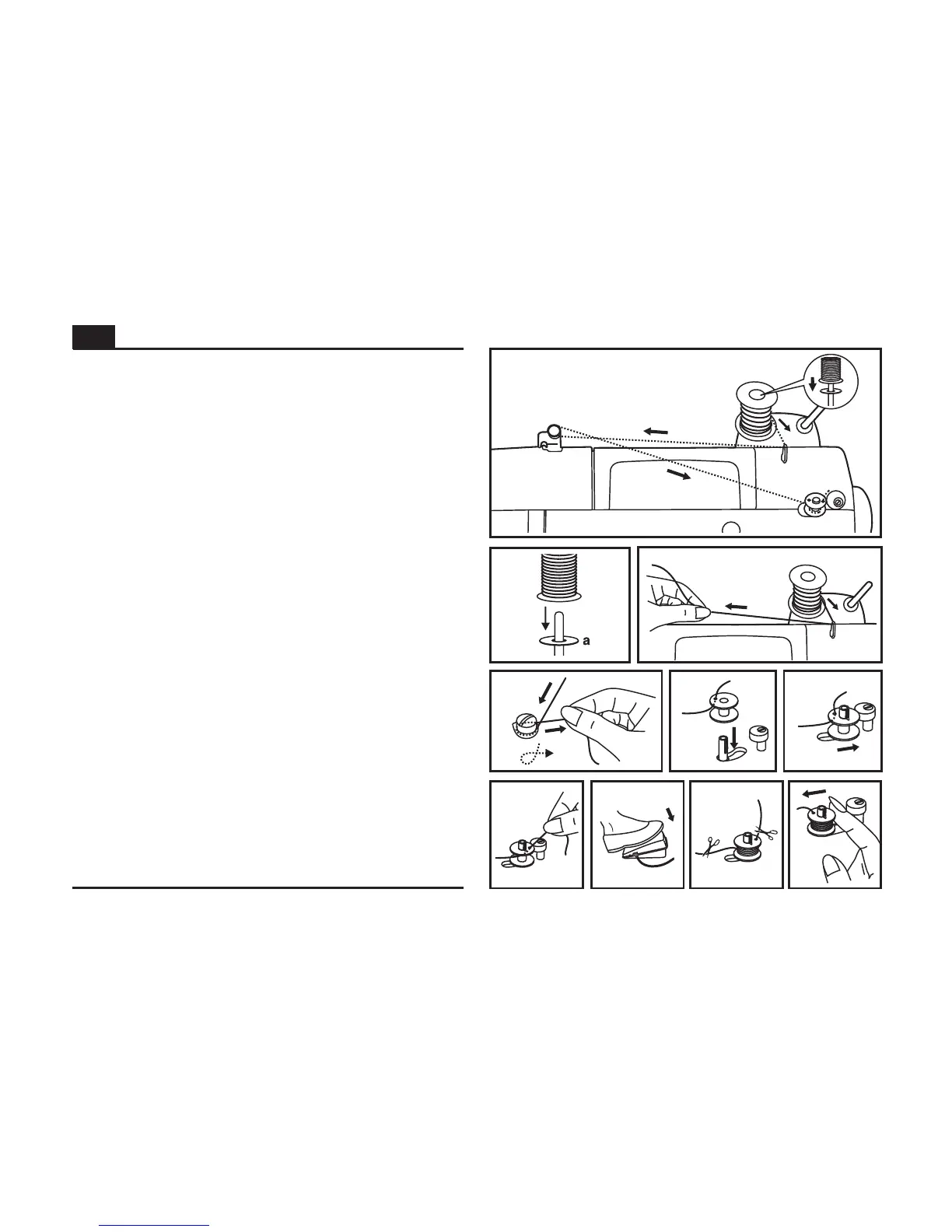 - Place the thread and spool pin felt (a) onto the spool pin. (1)