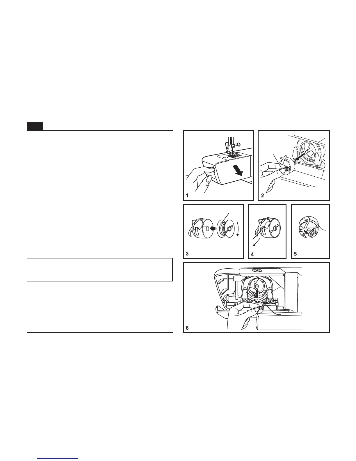 - Pull the bobbin case tab (a) and remove the bobbin case. (2)