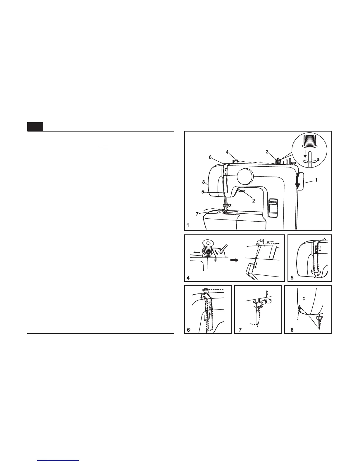 (7) and then down to the needle which should be threaded