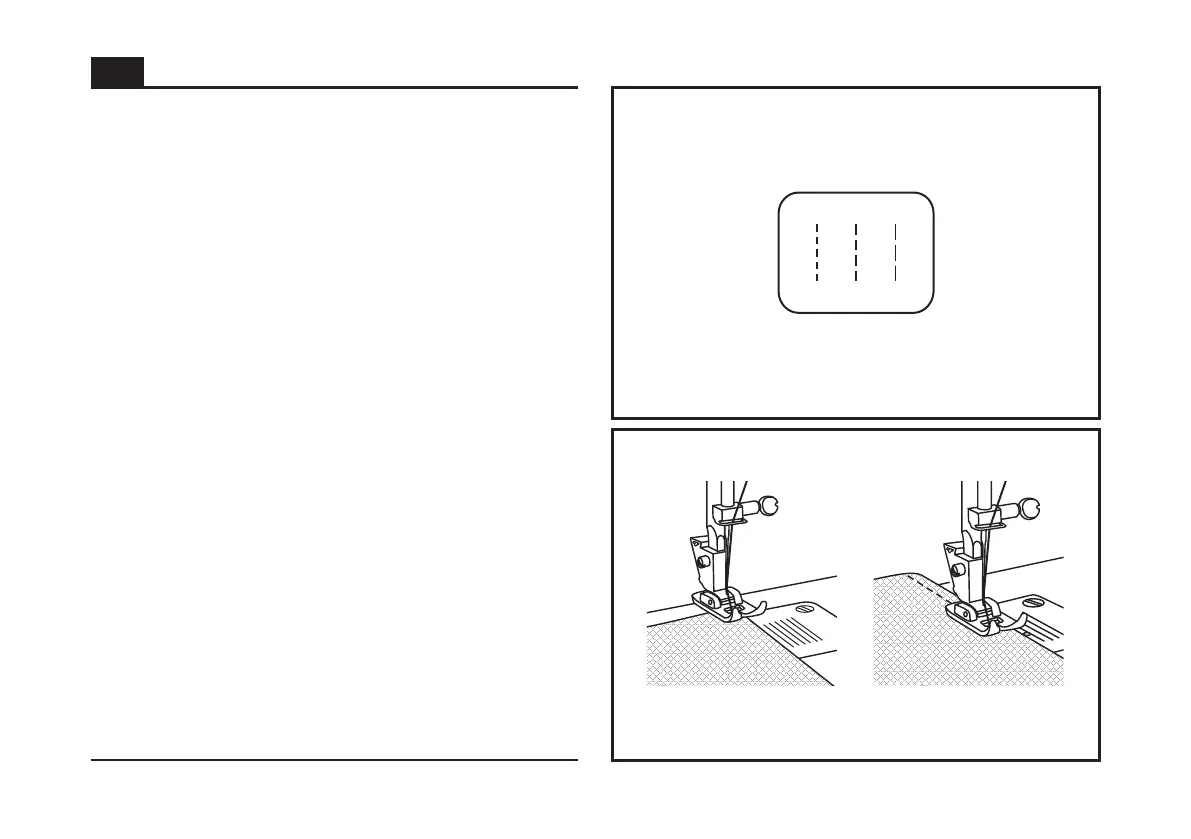 lined up with the desired seam guide line on the needle plate.