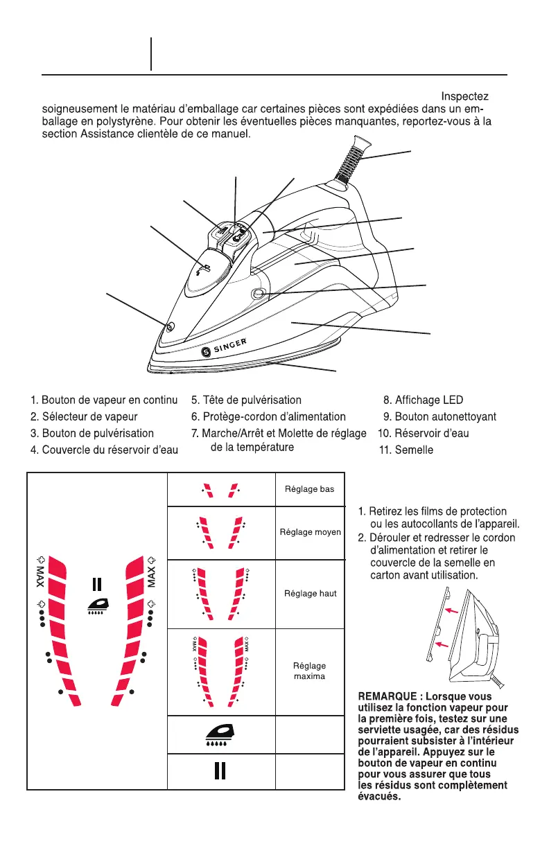 Singer SteamLogic - Informations Sur Le Produit; Panneau de Contrôle; Avant la Première Utilisation
