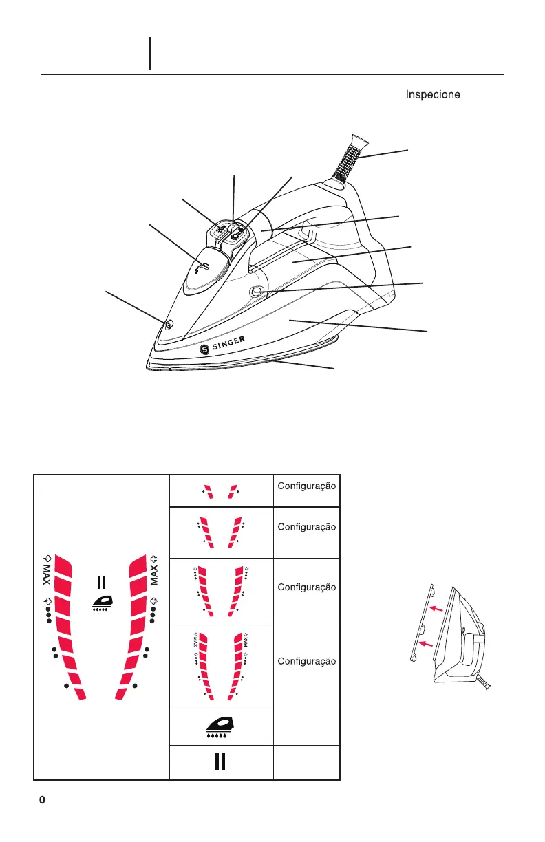 Os seguintes recursos e acessórios estão incluídos em seu ferro a vapor.