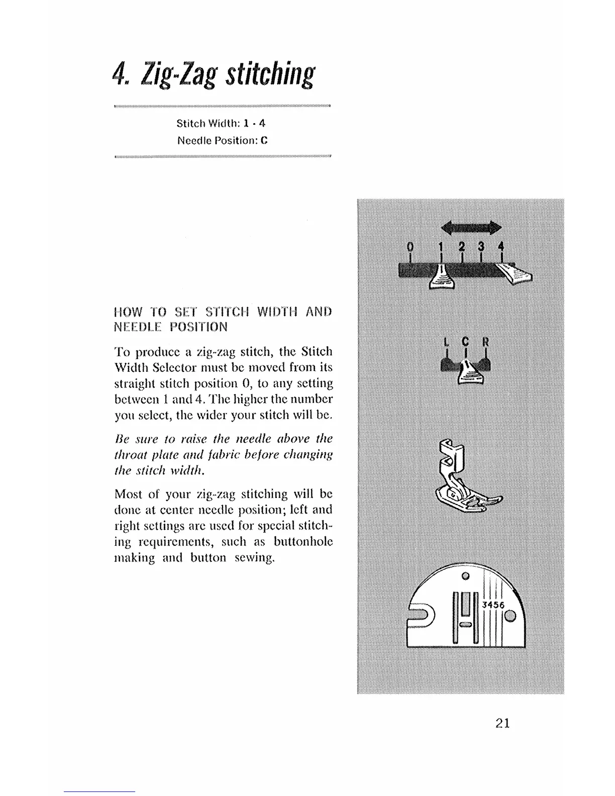 Singer Style-Mate 347 - Zig-Zag Stitching; How to Set Stitch Width and Needle Position