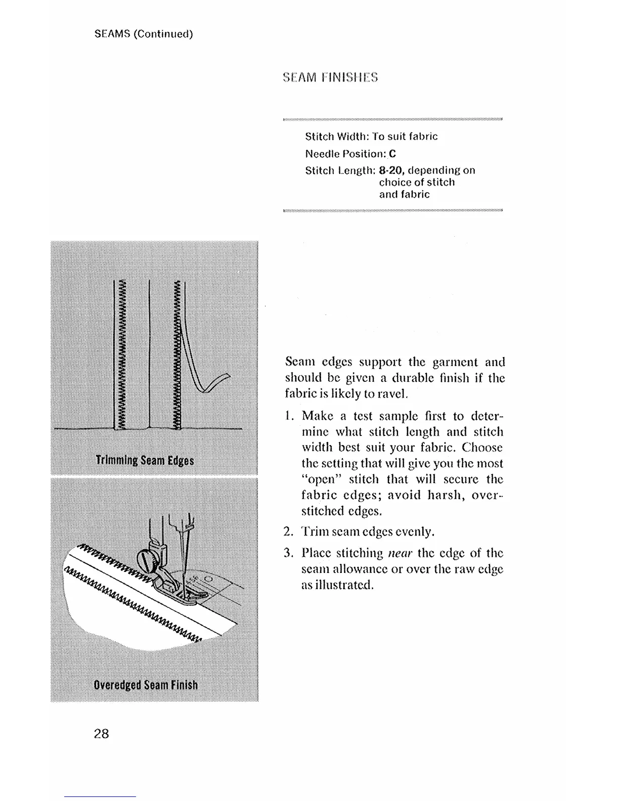 Singer Style-Mate 347 - Seam Finishes; Trimming Seam Edges; Overedged Seam Finish