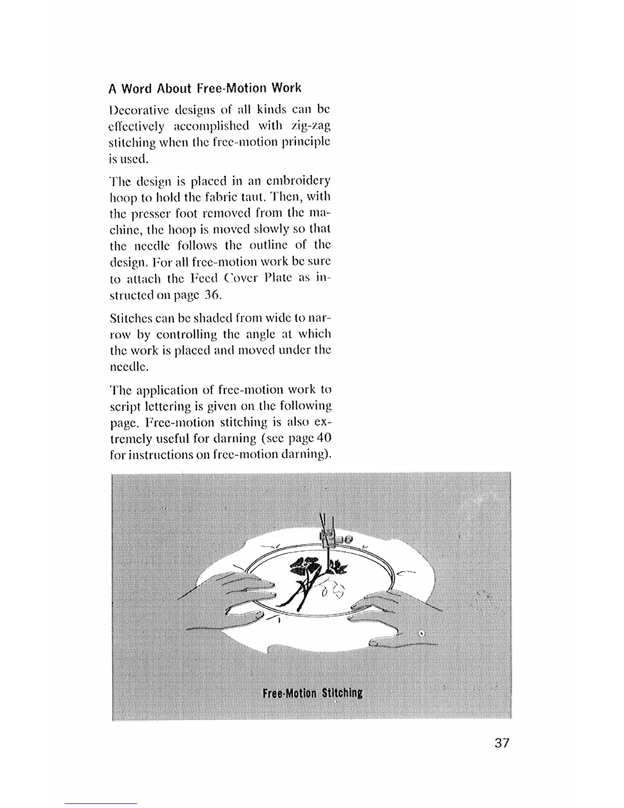 Singer Style-Mate 347 - A Word about Free-Motion Work; Free-Motion Stitching