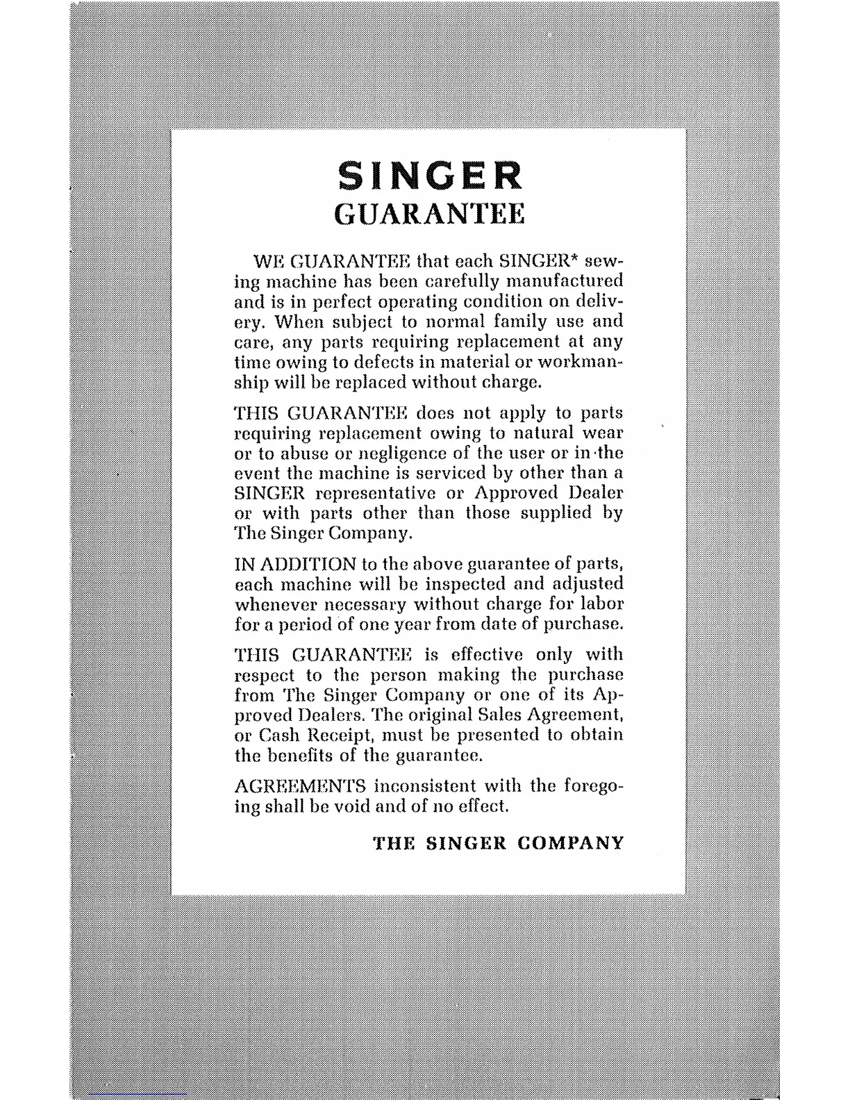 Singer Style-Mate 347 - Singer Guarantee