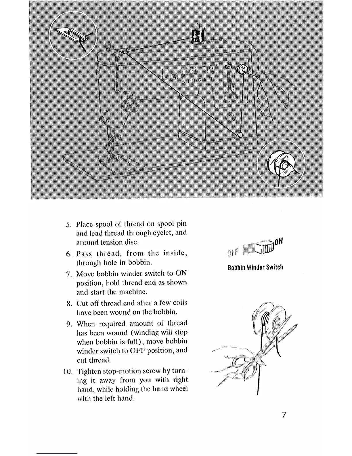 Singer Style-Mate 347 - Bobbin Winder Switch