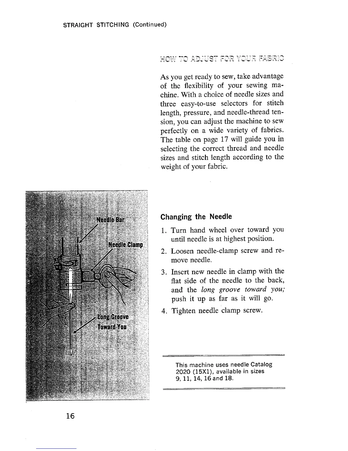 Singer Style-Mate 348 - How to Adjust for Your Fabric; Changing the Needle