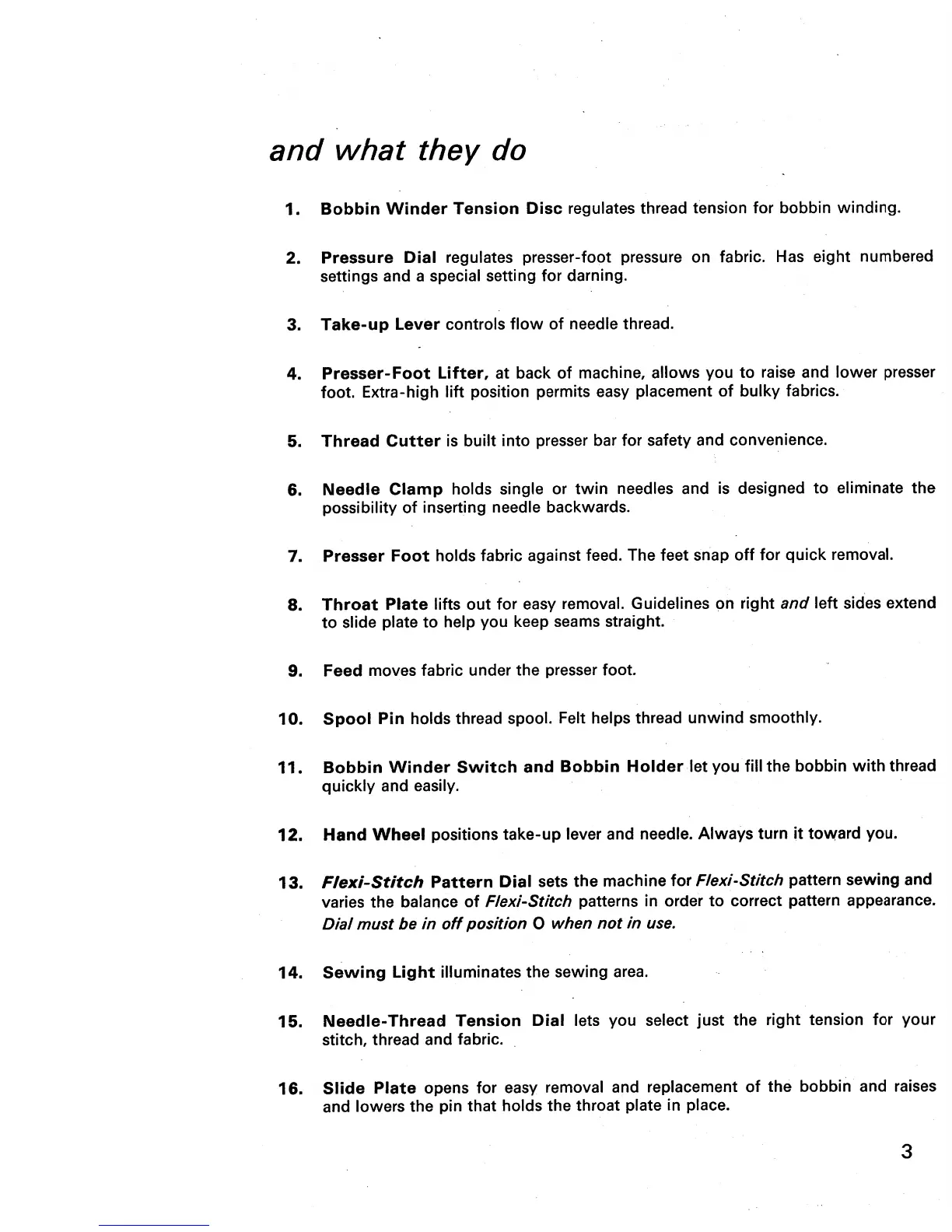 Singer Stylist 413 - Principal Parts Description