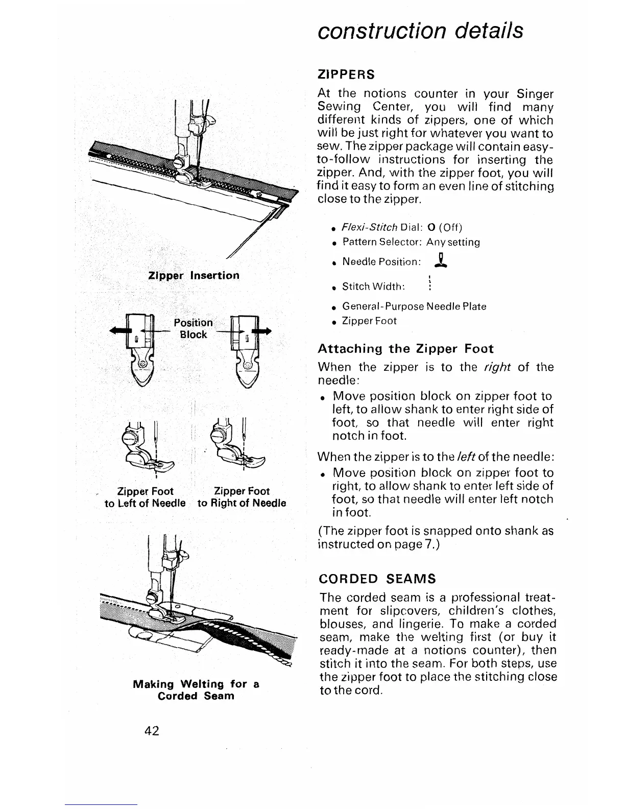Singer Stylist 533 - CONSTRUCTION DETAILS; Zippers and Corded Seams