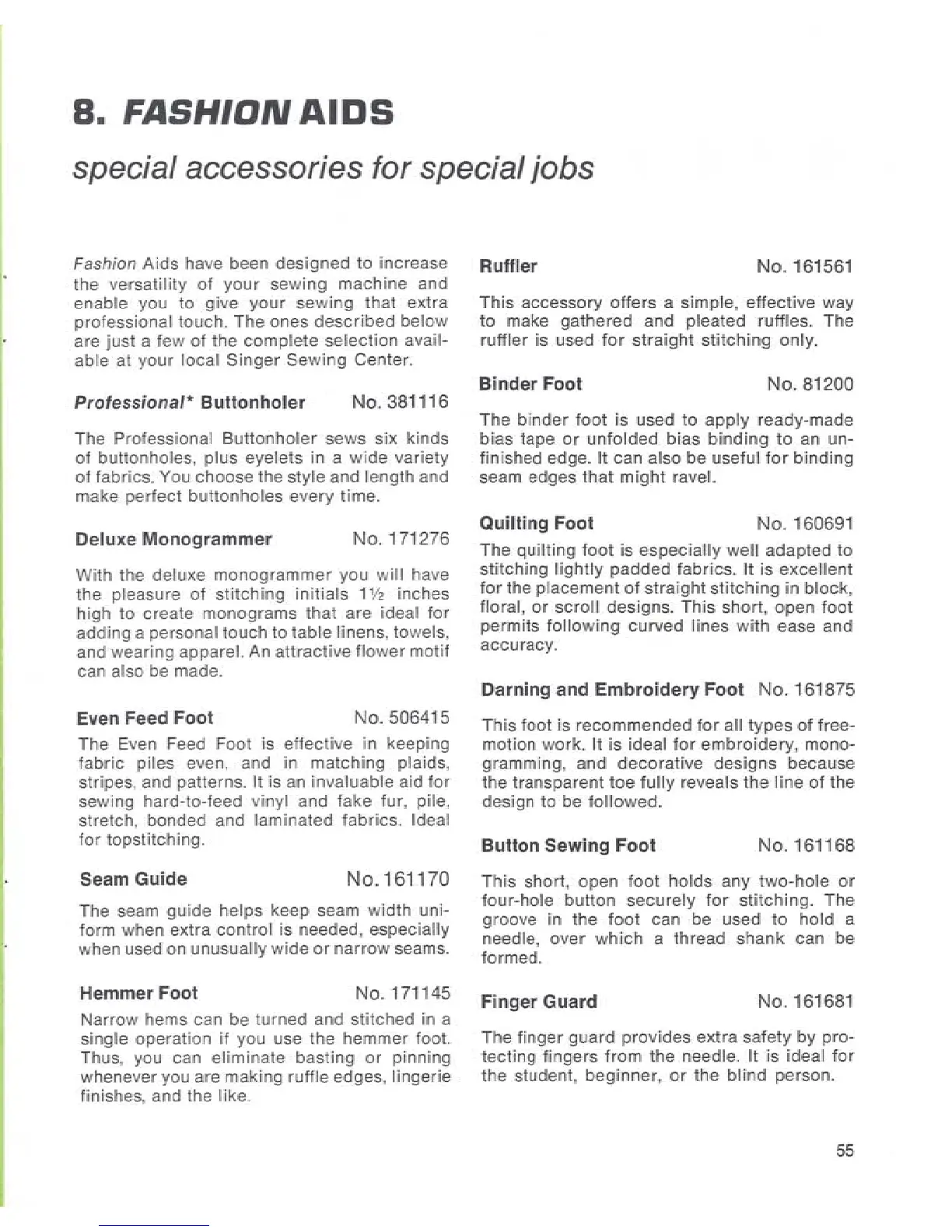 Singer Stylist 774 - Fashion Aids; Special Accessories for Special Jobs