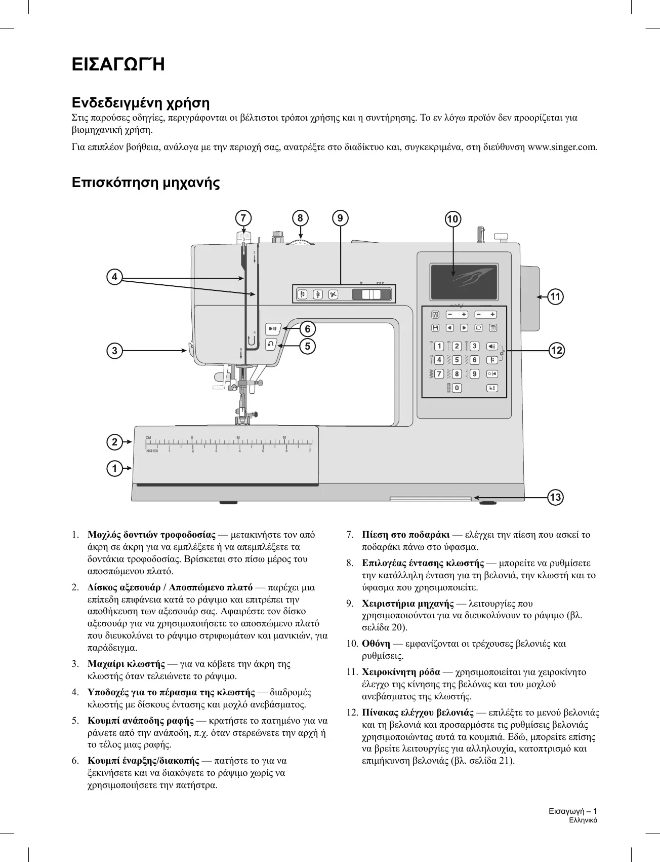 10. Οθόνη — εμφανίζονται οι τρέχουσες βελονιές και