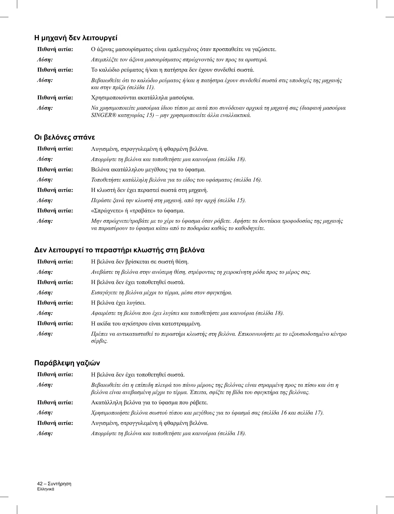 SINGER® κατηγορίας 15) – μην χρησιμοποιείτε άλλα εναλλακτικά.