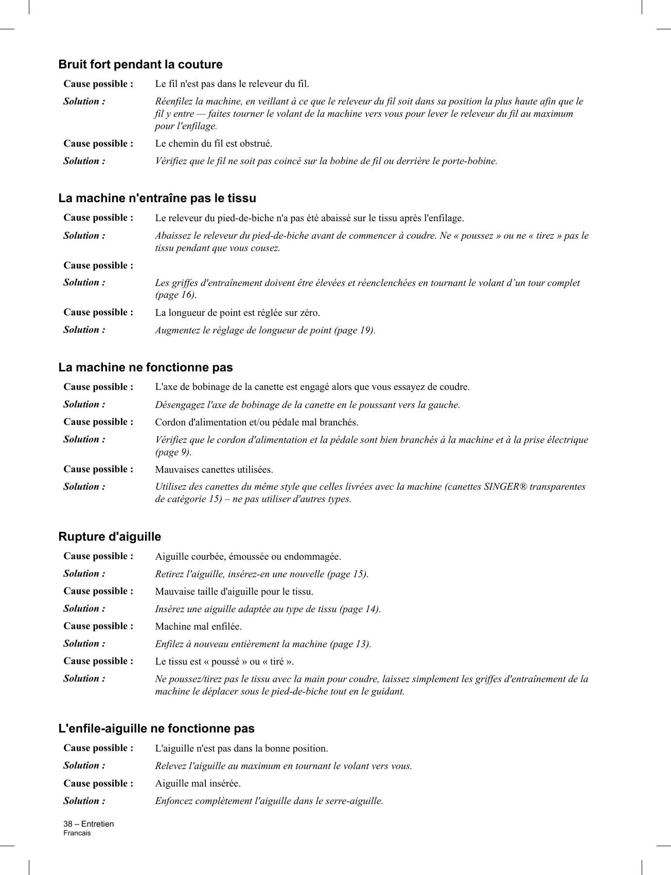 Retirez l'aiguille, insérez-en une nouvelle (page 15).