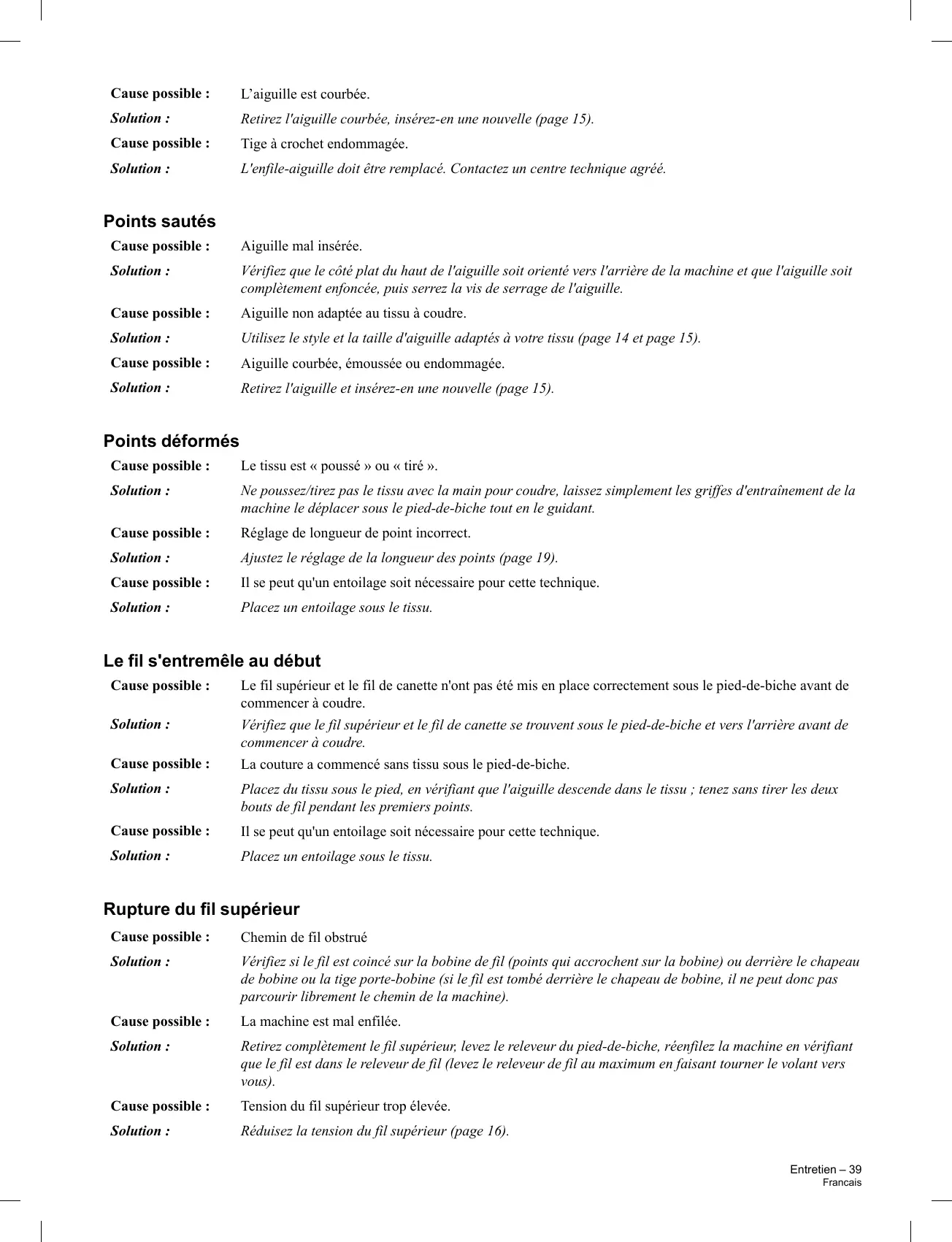Retirez l'aiguille et insérez-en une nouvelle (page 15).