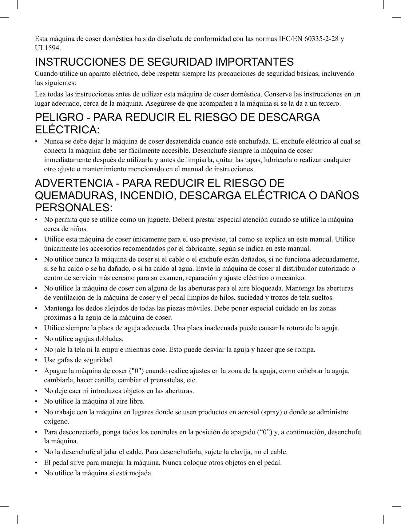Esta máquina de coser doméstica ha sido diseñada de conformidad con las normas IEC/EN 60335-2-28 y