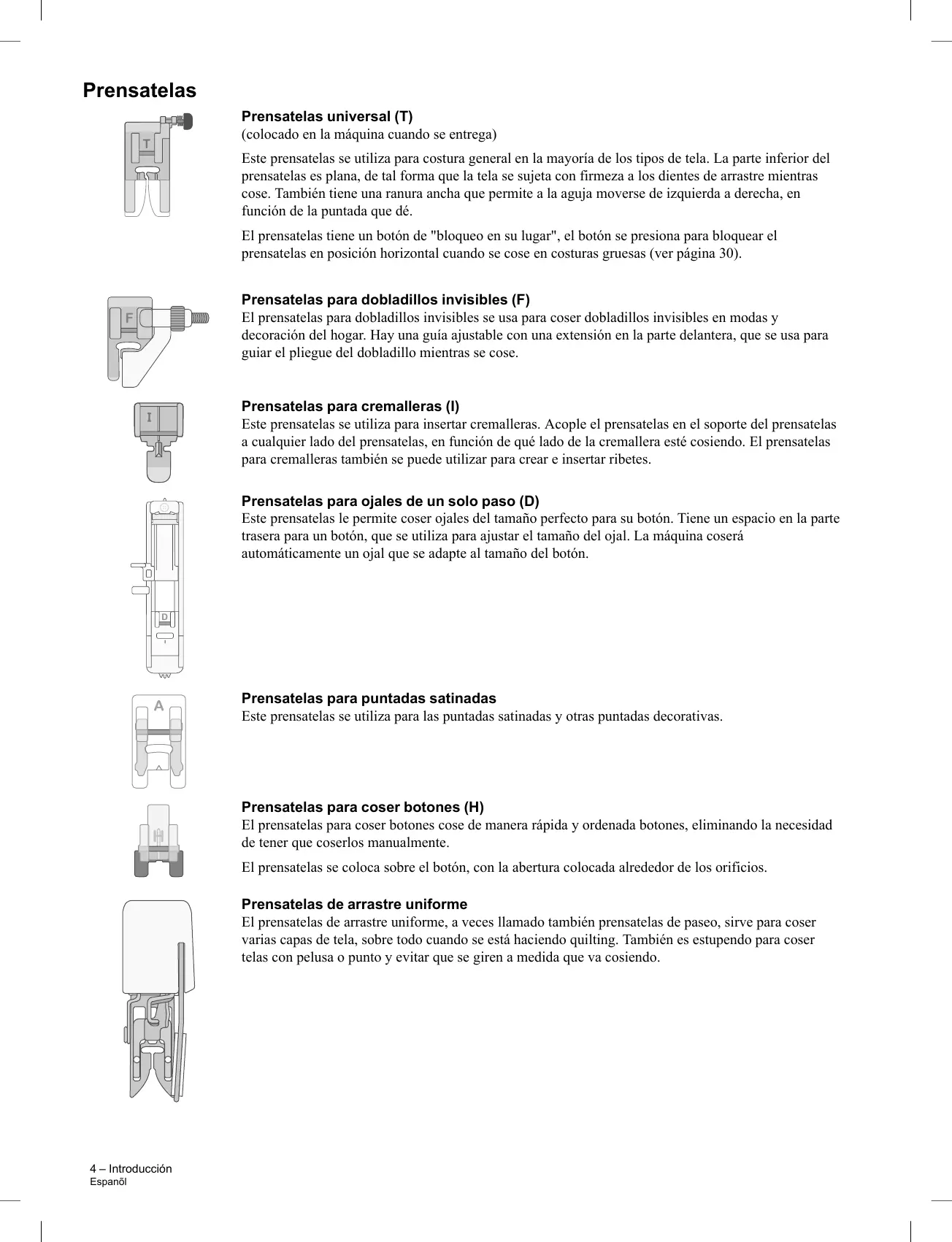 Prensatelas para puntadas satinadas