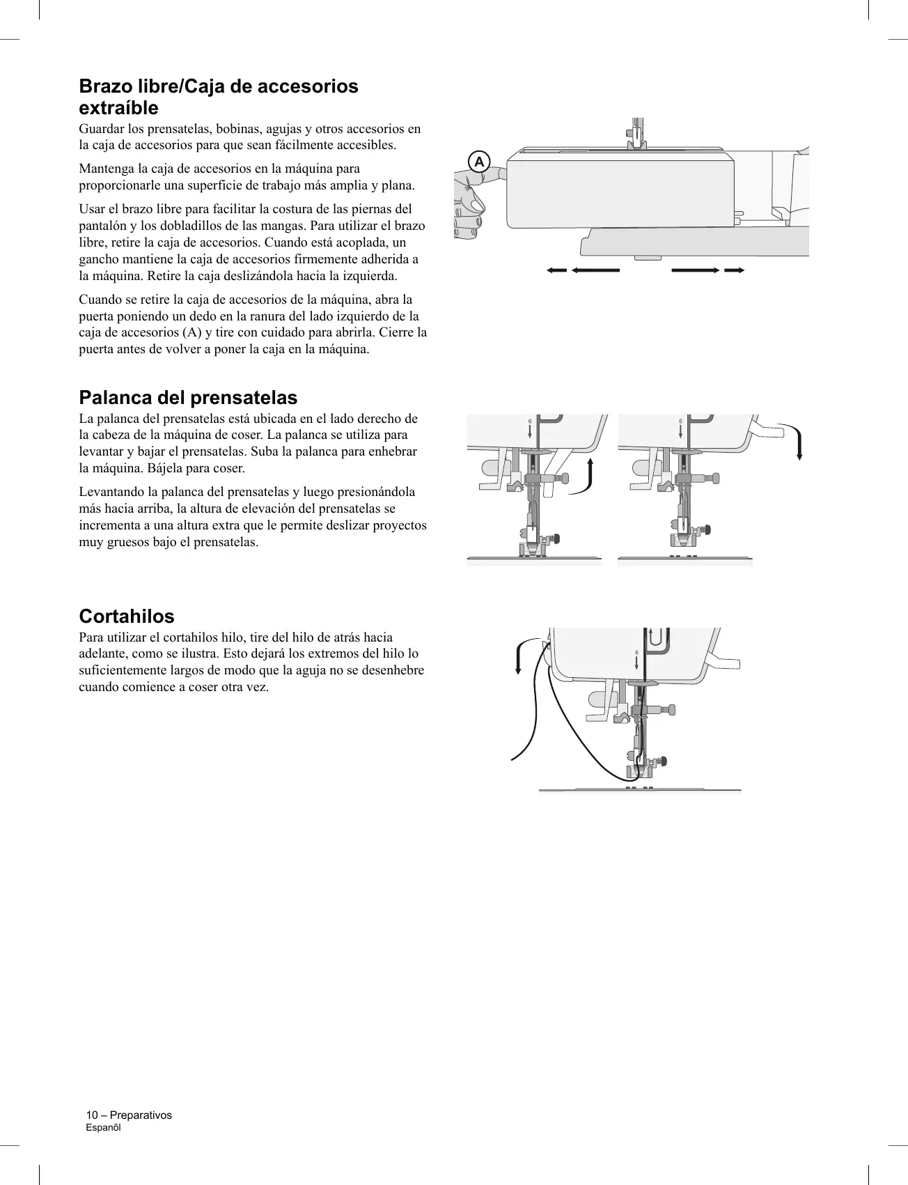 la cabeza de la máquina de coser. La palanca se utiliza para