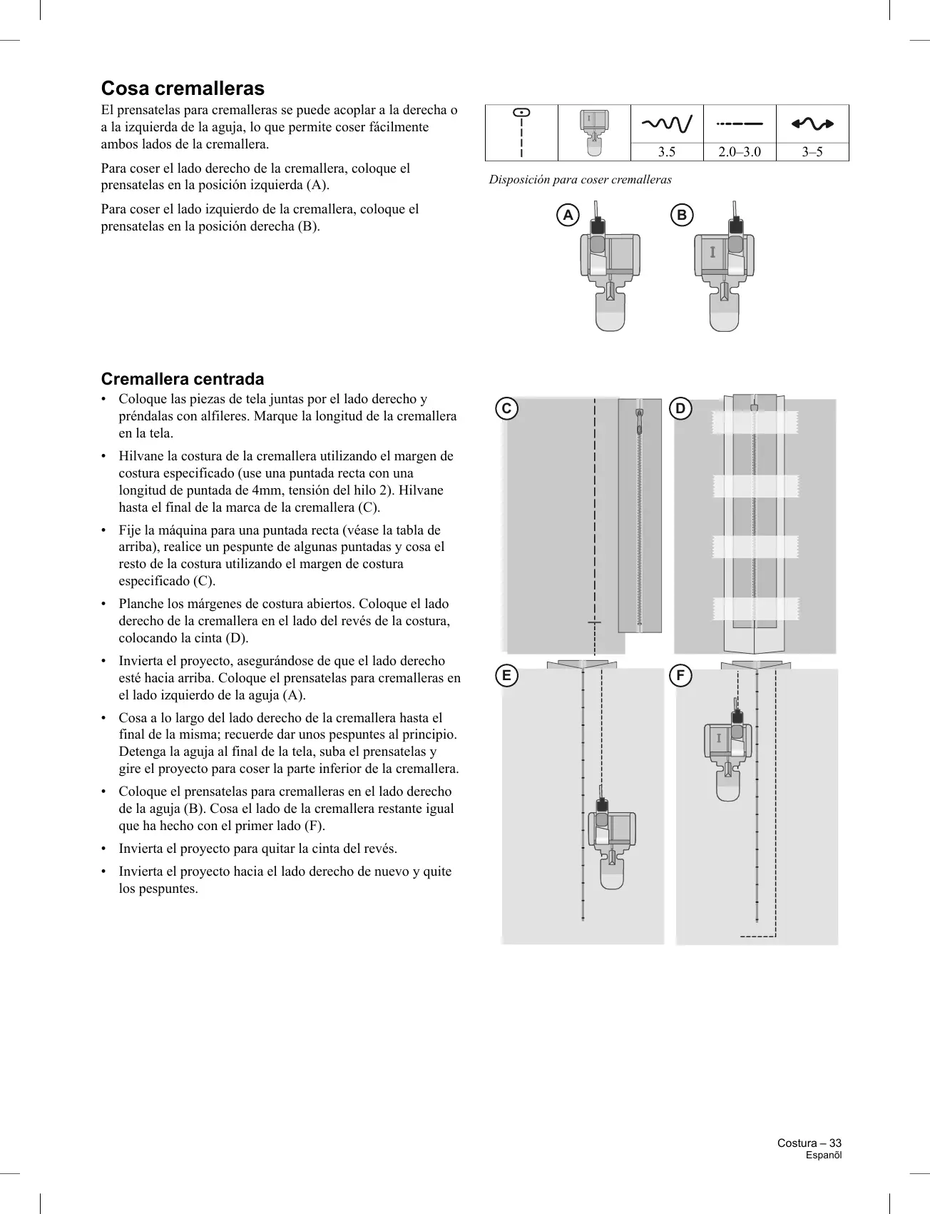 • Cosa a lo largo del lado derecho de la cremallera hasta el