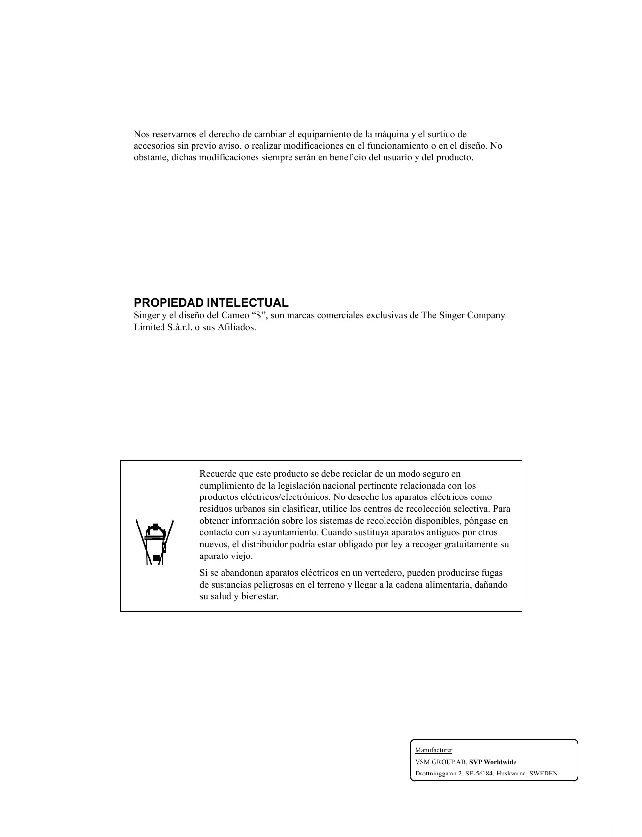 Singer y el diseño del Cameo “S”, son marcas comerciales exclusivas de The Singer Company