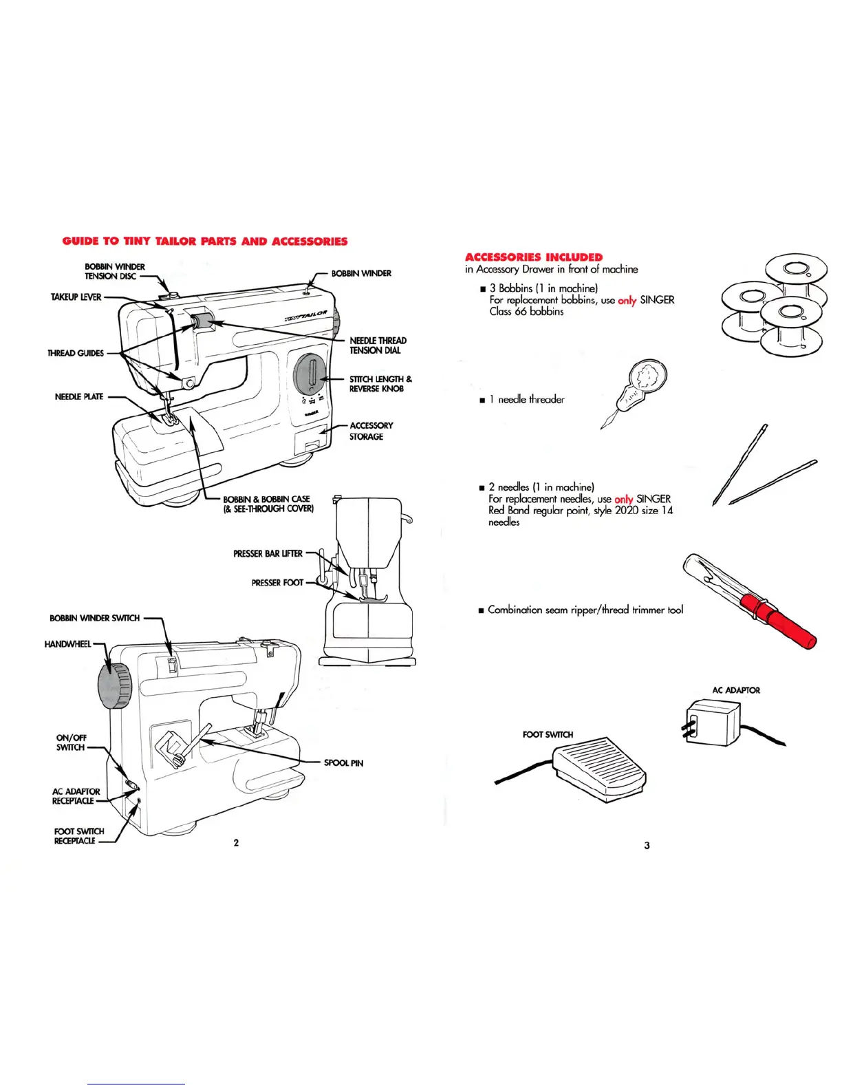 Singer TINY TAYLOR TT600 - Components View; Guide to Tiny Lailor Parts and Accessories; Accessories Included