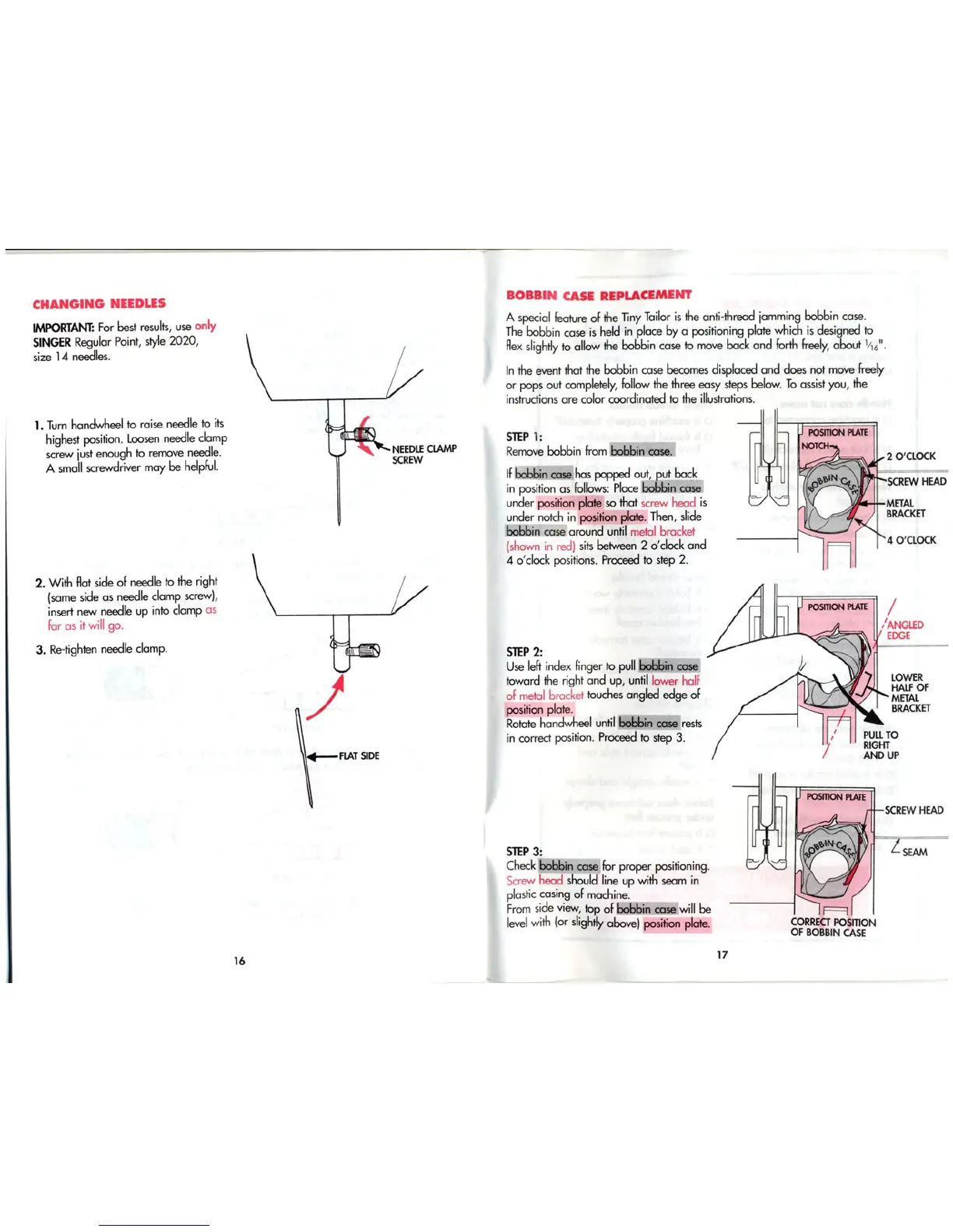 Singer TINY TAYLOR TT600 - Changing Needles; Bobbin Case Replacement