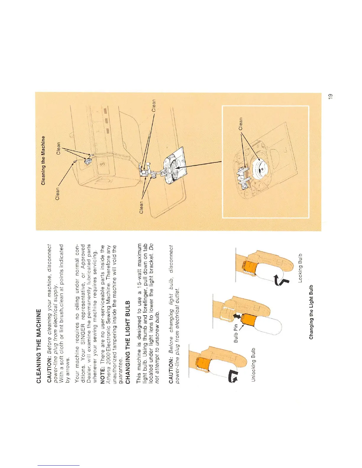 Singer TOUCH-TRONIC 2000 - Cleaning the Machine; Changing the Light Bulb