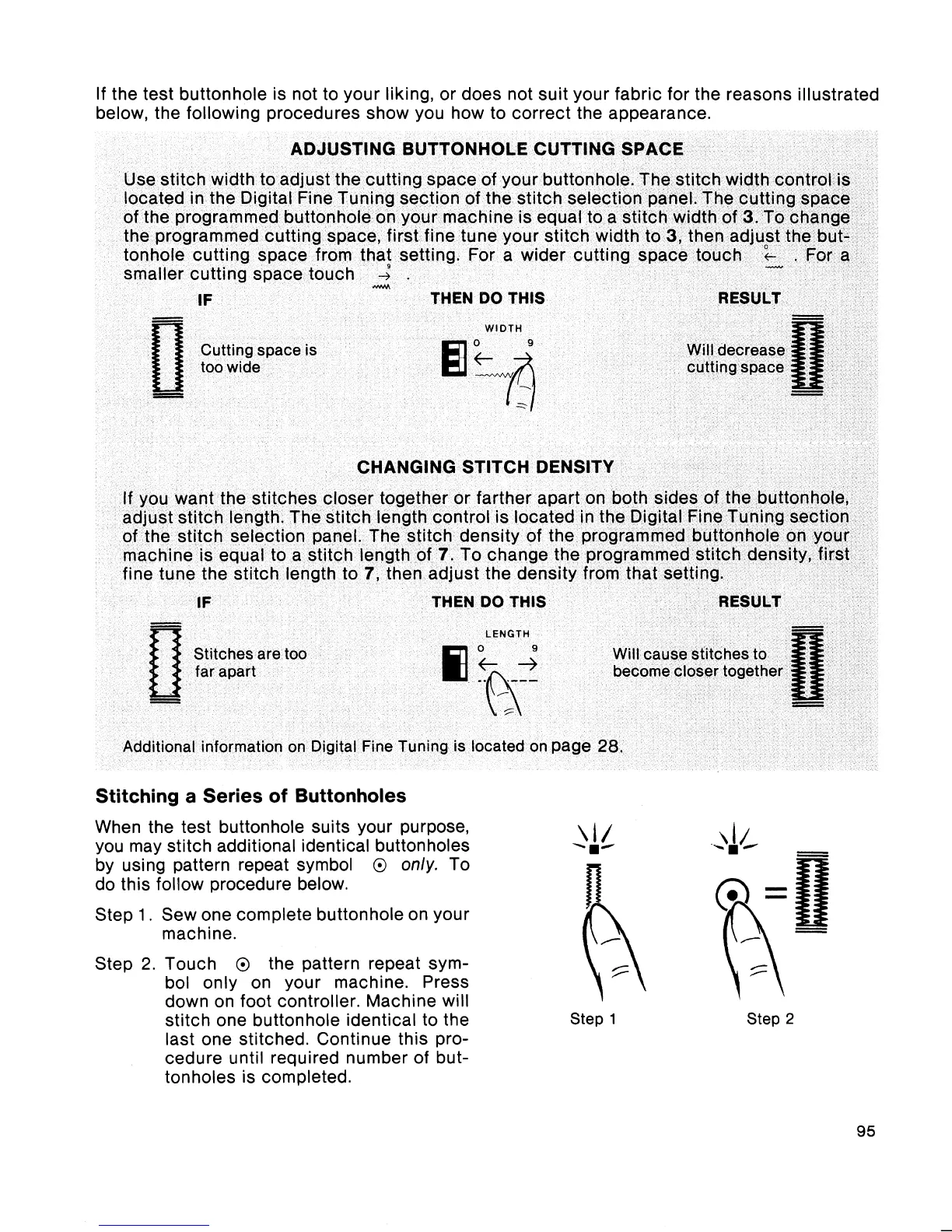 Singer Touch-Tronic 2001 - Adjusting Buttonhole Cutting Space; Changing Stitch Density; Stitching a Series of Buttonholes