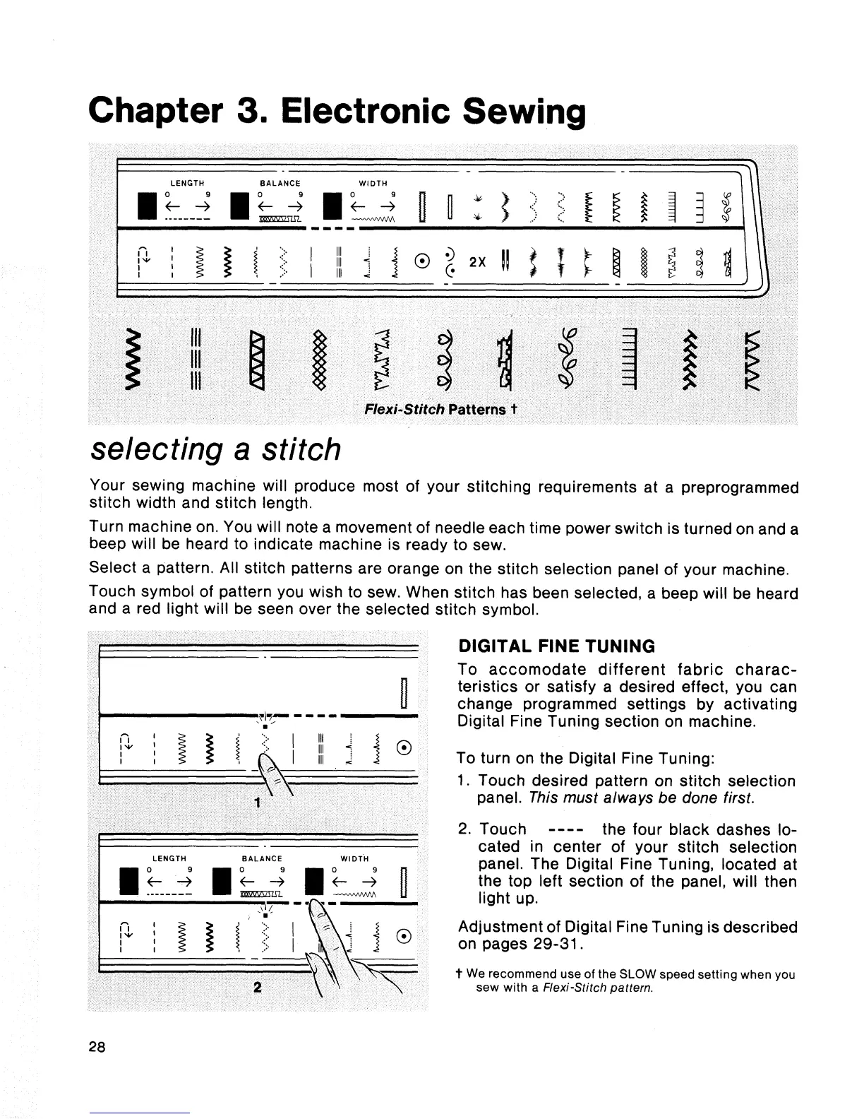 Singer Touch-Tronic 2001 - Electonic Sewing; Selecting a Stitch; Digital Fine Tuning