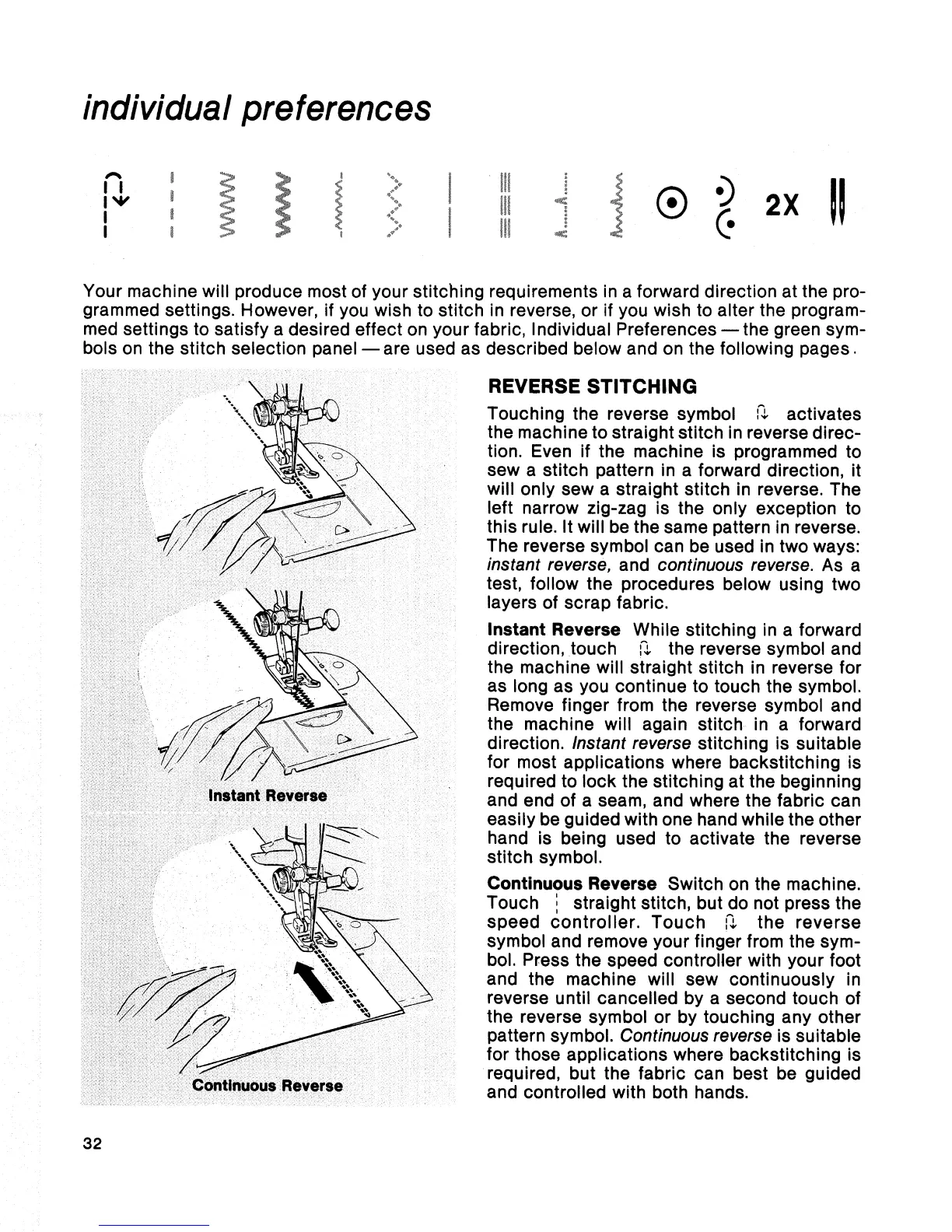 Singer Touch-Tronic 2001 - Individual Preferences; Reverse Stitching