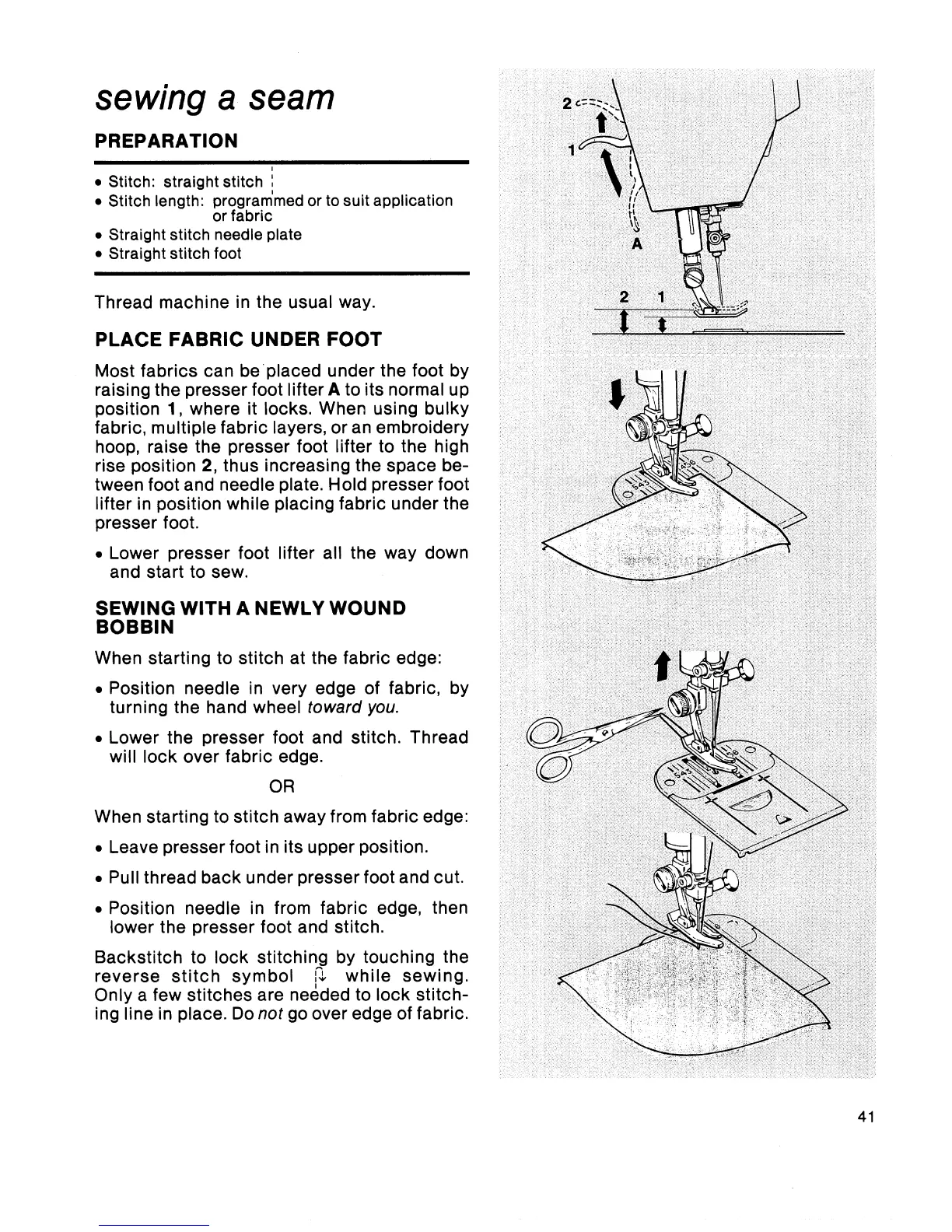 Singer Touch-Tronic 2001 - Sewing a Seam; Place Fabric under Foot; Sewing with a Newly Wound Bobbin