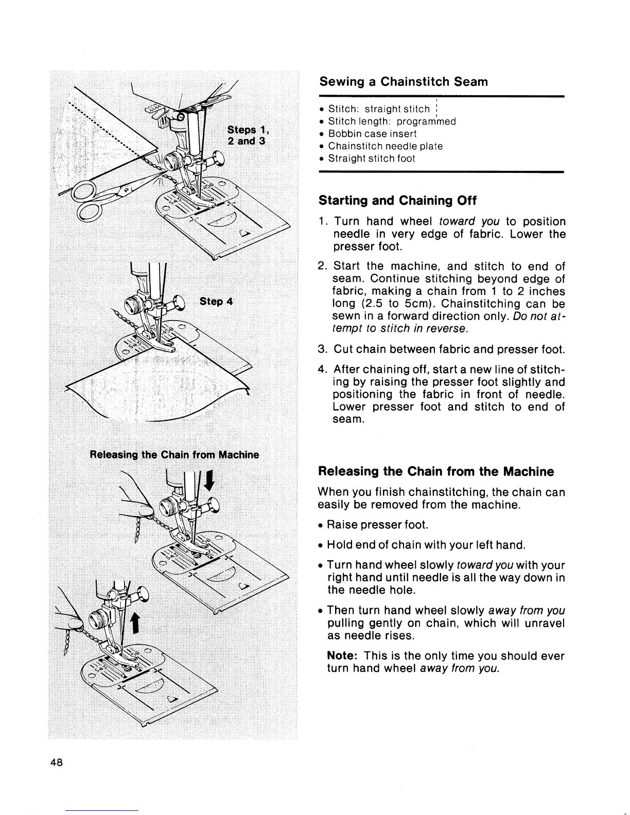 Singer Touch-Tronic 2001 - Starting and Chaining off; Releasing the Chain from the Machine; Sewing a Chainstitch Seam