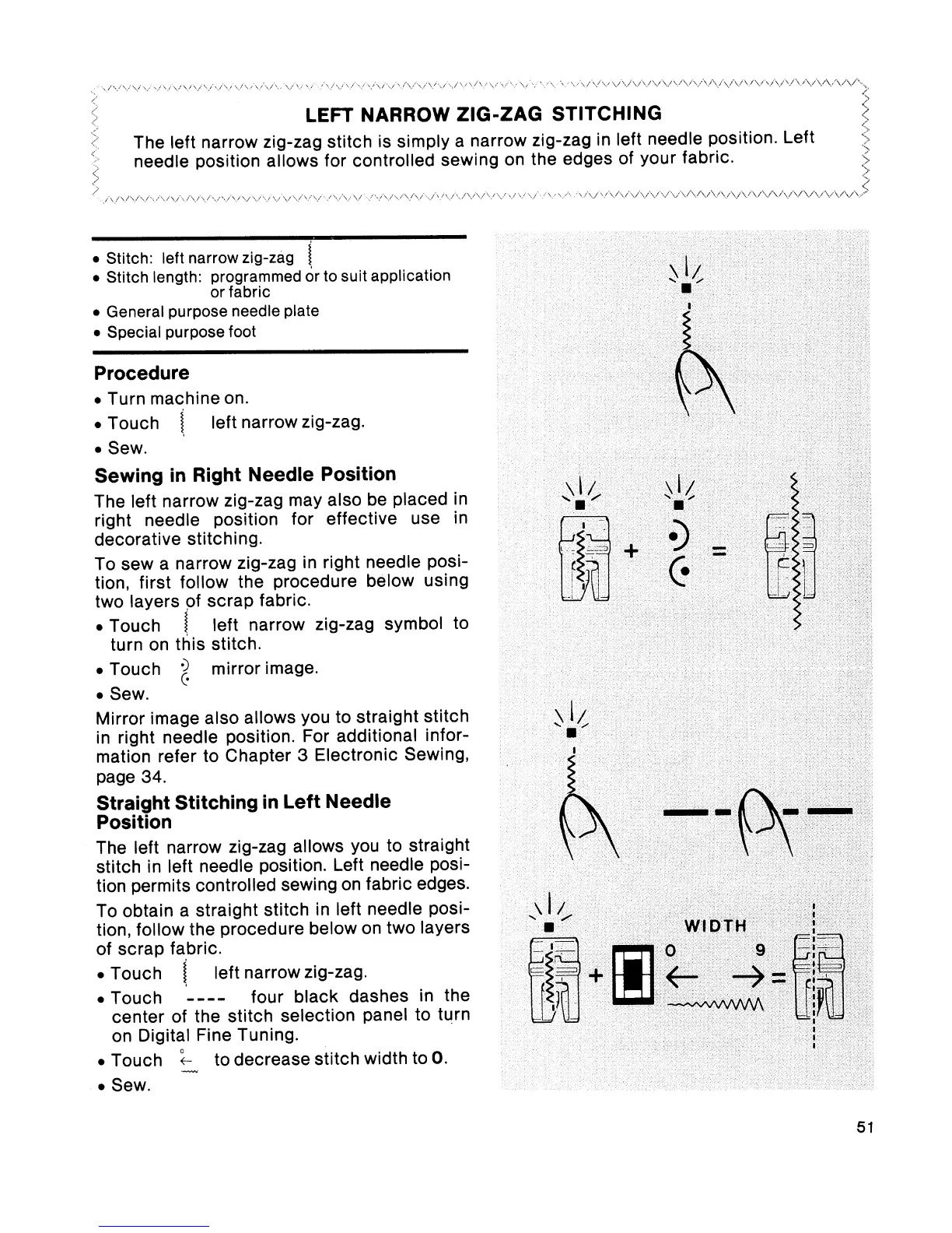 Singer Touch-Tronic 2001 - Left Narrow Zig-Zag Stitching; Sewing in Right Needle Position; Straight Stitching in Left Needle Position