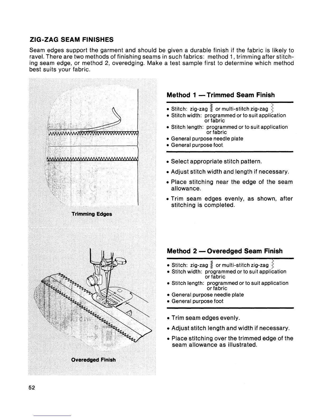 Singer Touch-Tronic 2001 - Zig-Zag Seam Finishes; Trimmed;Overedged Seam Finish