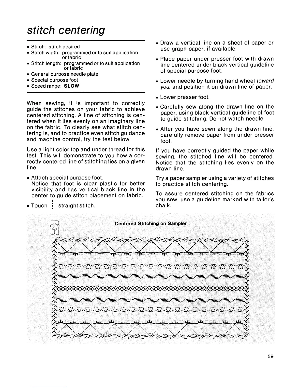 Singer Touch-Tronic 2001 - Stitch Centering; Centered Stitching on Sampler