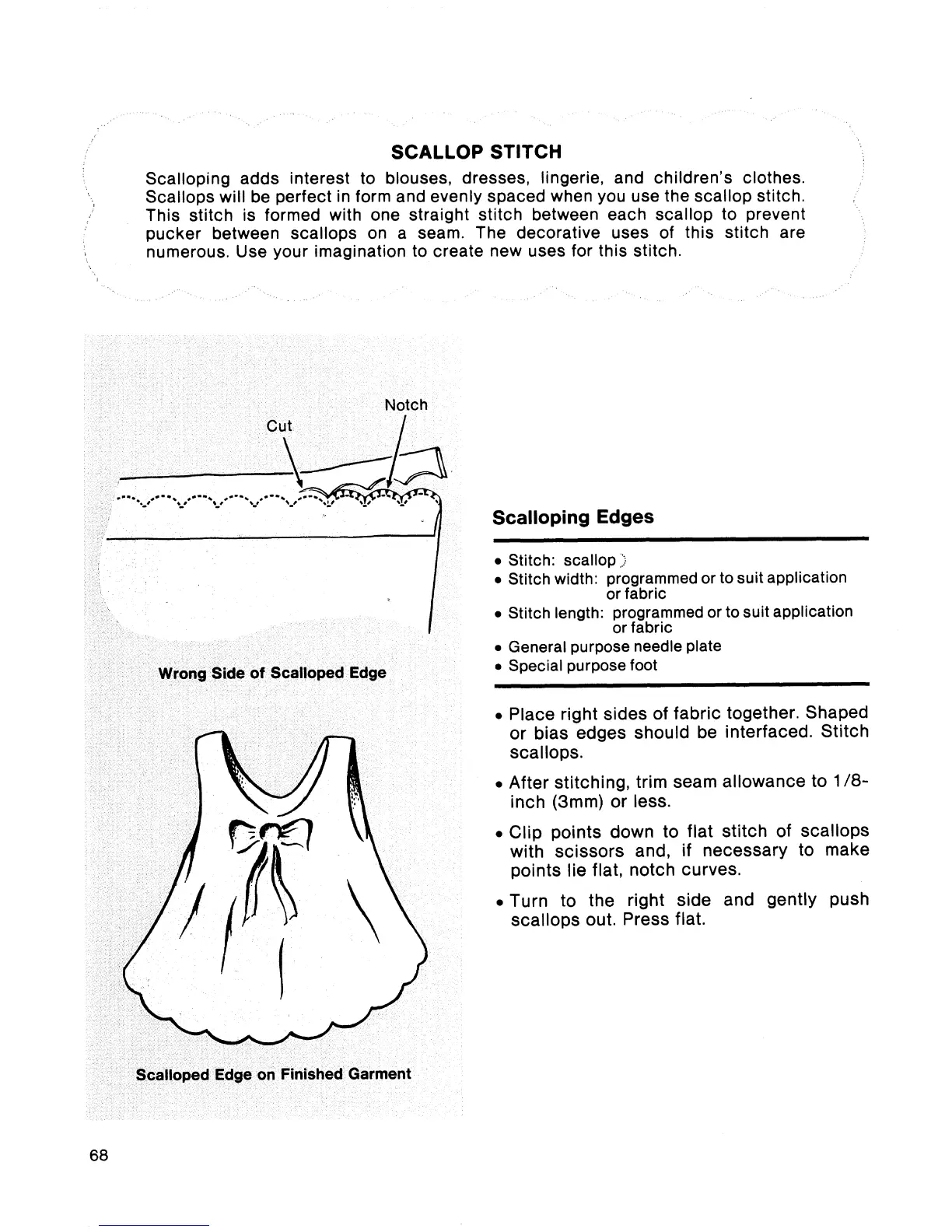 Singer Touch-Tronic 2001 - Scalloping Edges; Wrong Side of Scalloped Edge; Scalloped Edge on Finished Garment