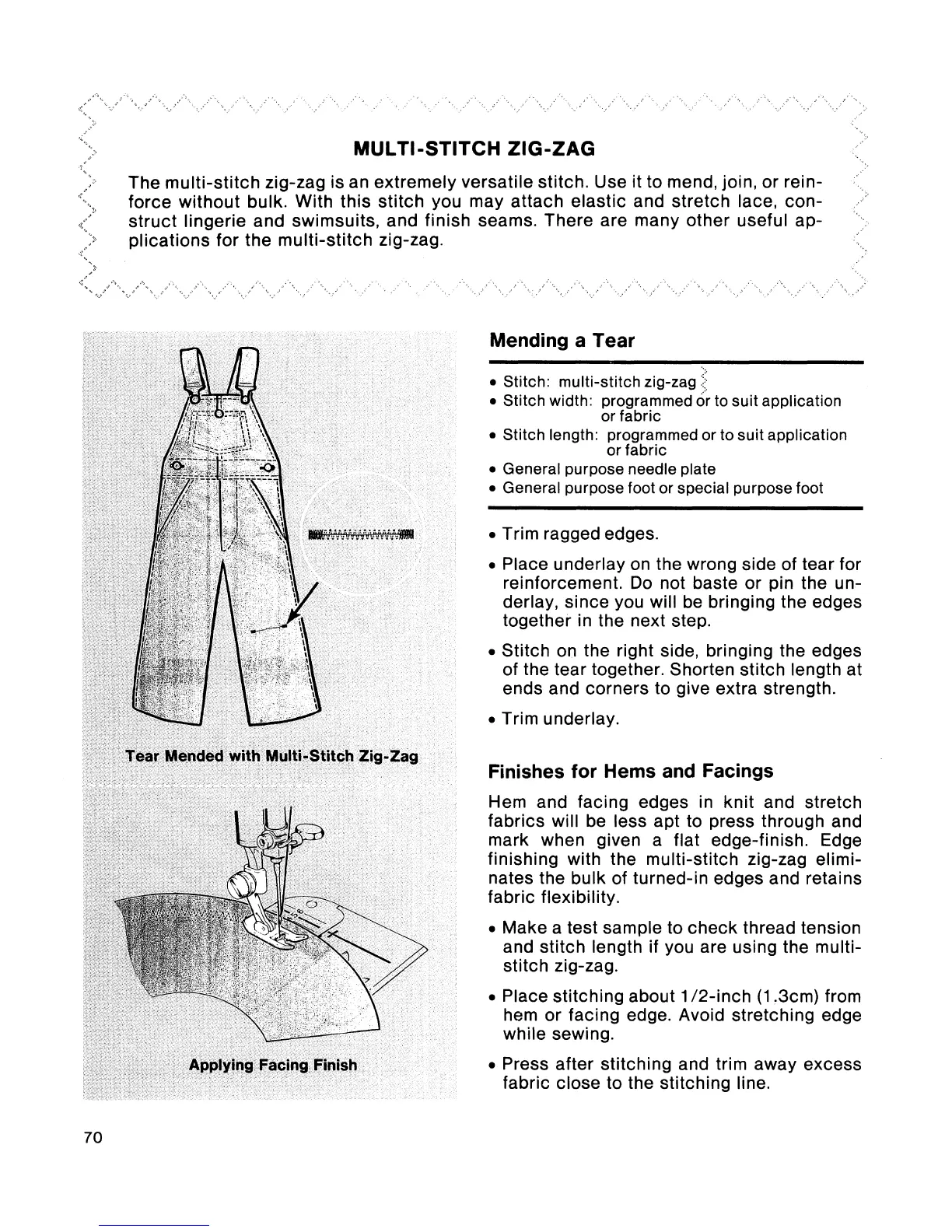 Singer Touch-Tronic 2001 - Multi-Stitch Zig-Zag; Mending a Tear; Finishes for Hems and Facings