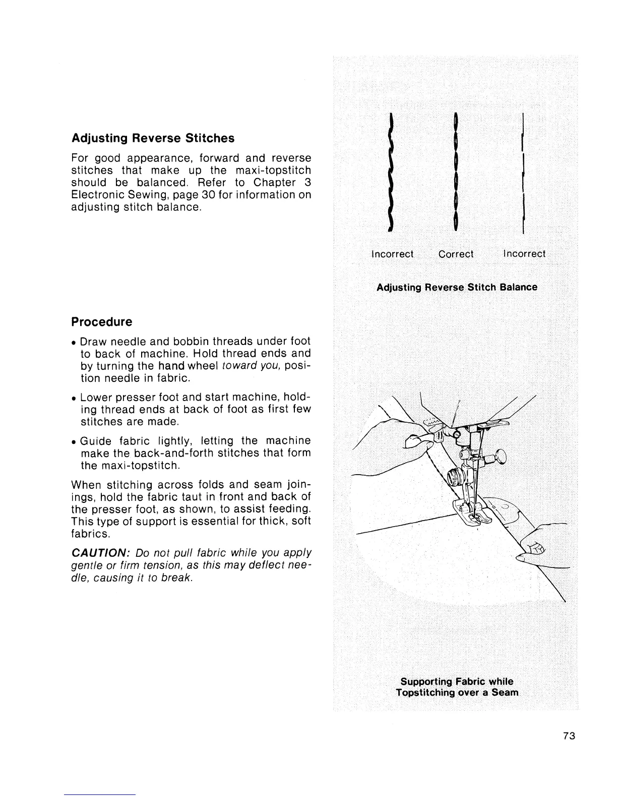 Singer Touch-Tronic 2001 - Adjusting Reverse Stitch Balance; Supporting Fabric While Topstitching over a Seam