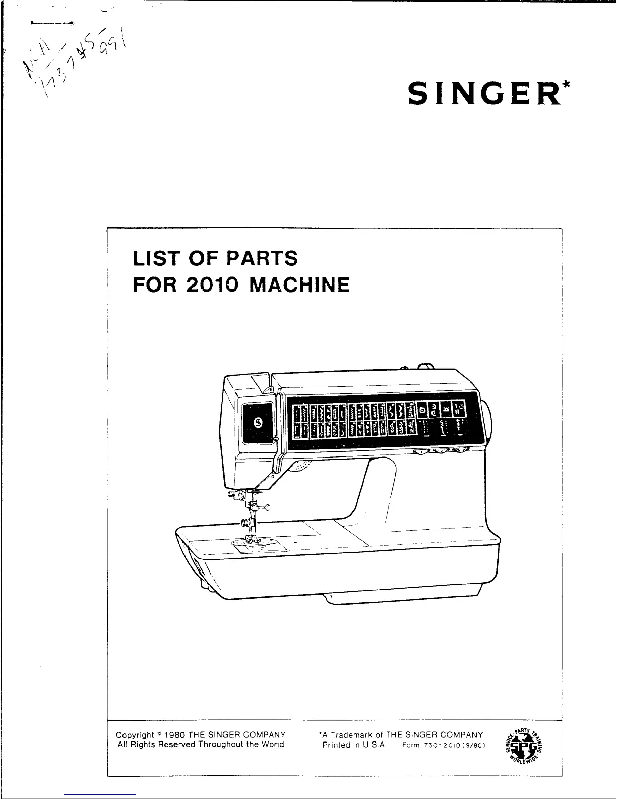 Singer Touch Tronic 2010 - Singer 2010 Sewing Machine Parts List