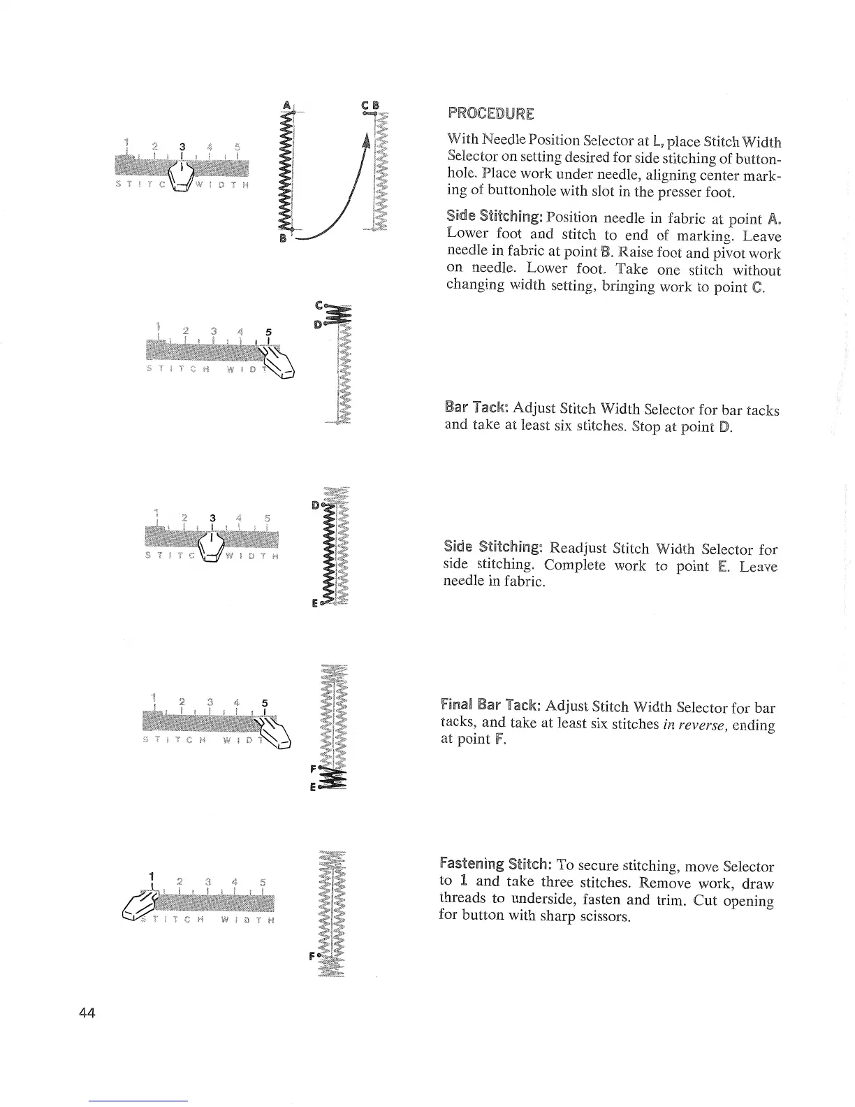 Singer Touch&Sew 626 - Procedure; Bar Tack; Side Stitching; Fial Bar Tack