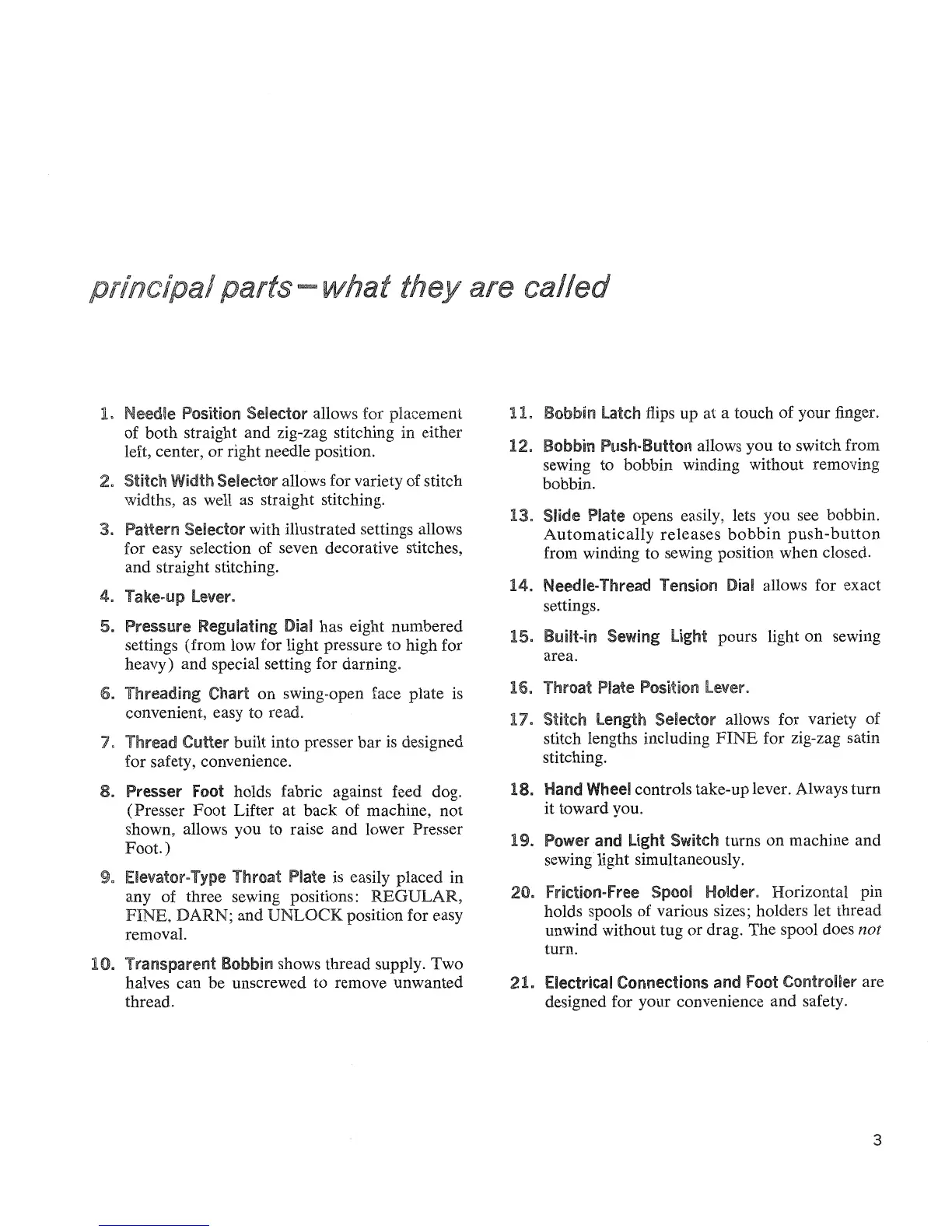 Singer Touch&Sew 626 - Principal Parts - What They Are Called