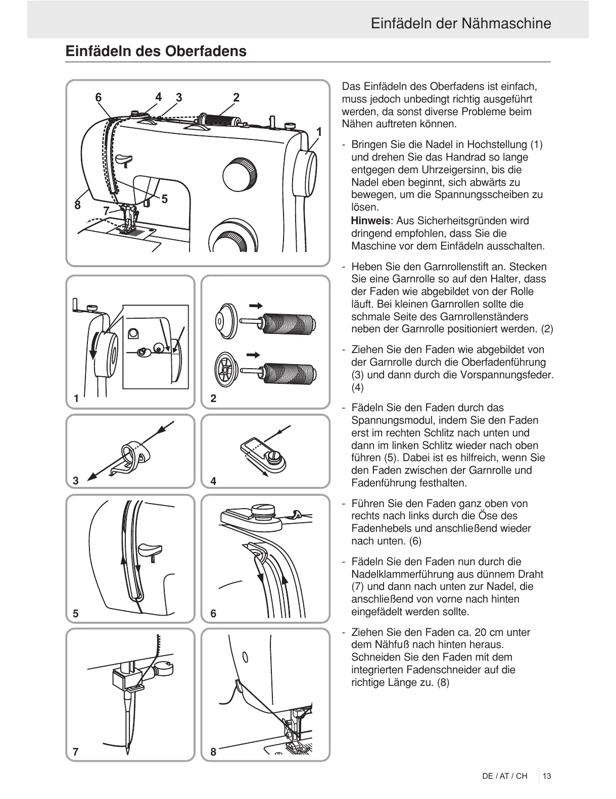 Maschine vor dem Einfädeln ausschalten.