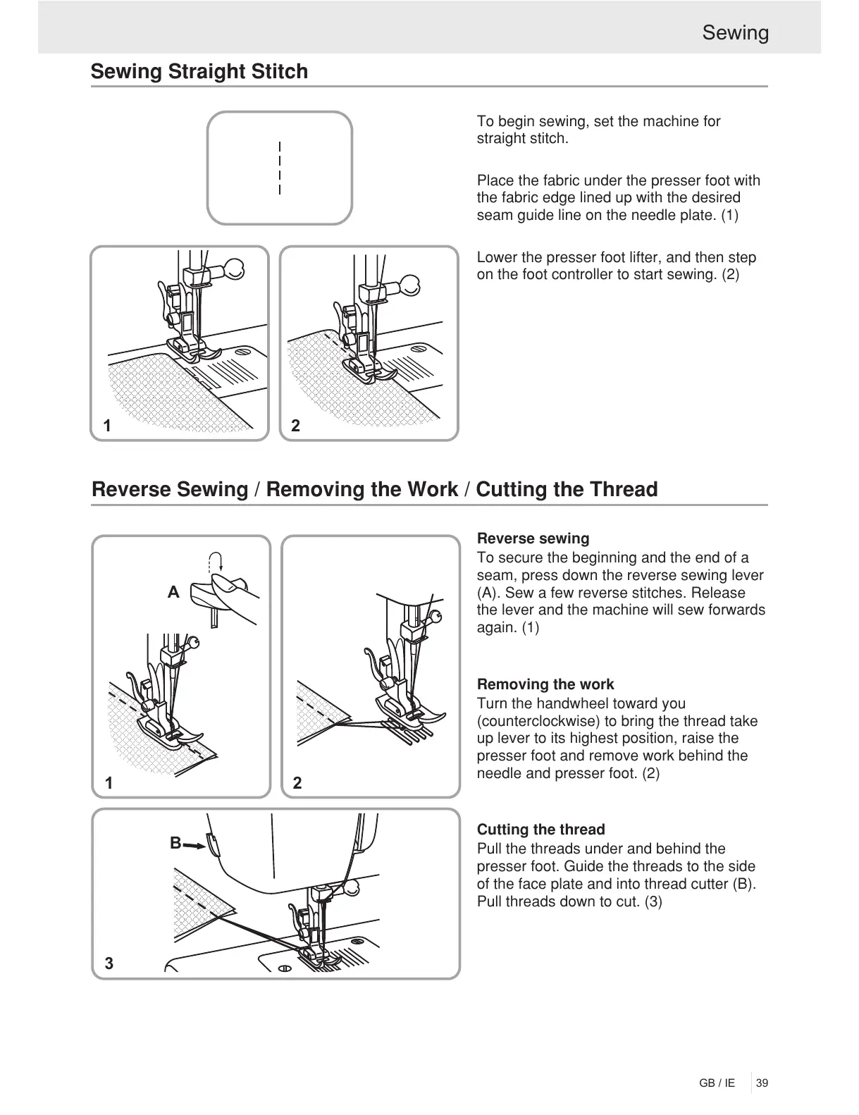 Reverse Sewing / Removing the Work / Cutting the Thread