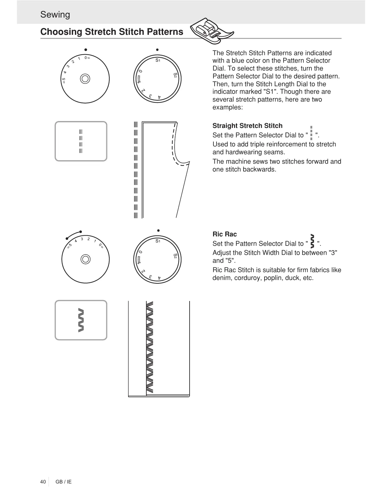 The Stretch Stitch Patterns are indicated