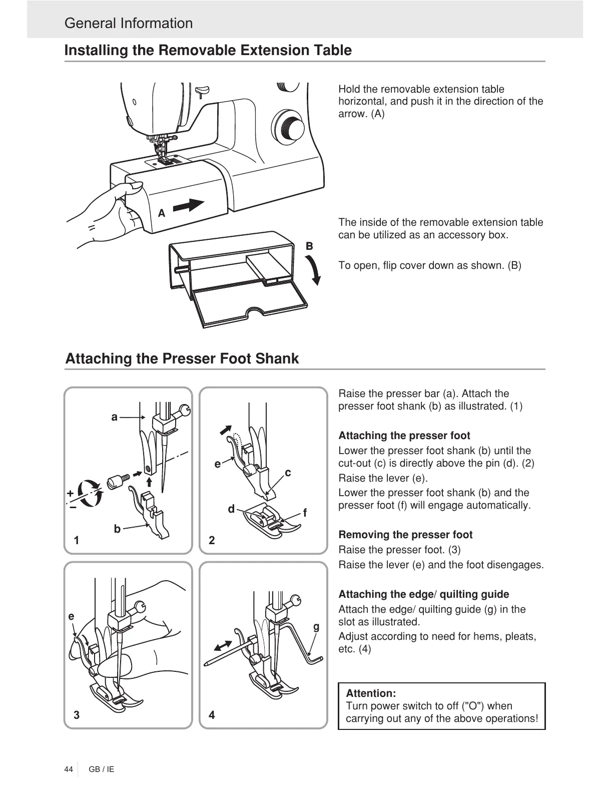 presser foot shank (b) as illustrated. (1)