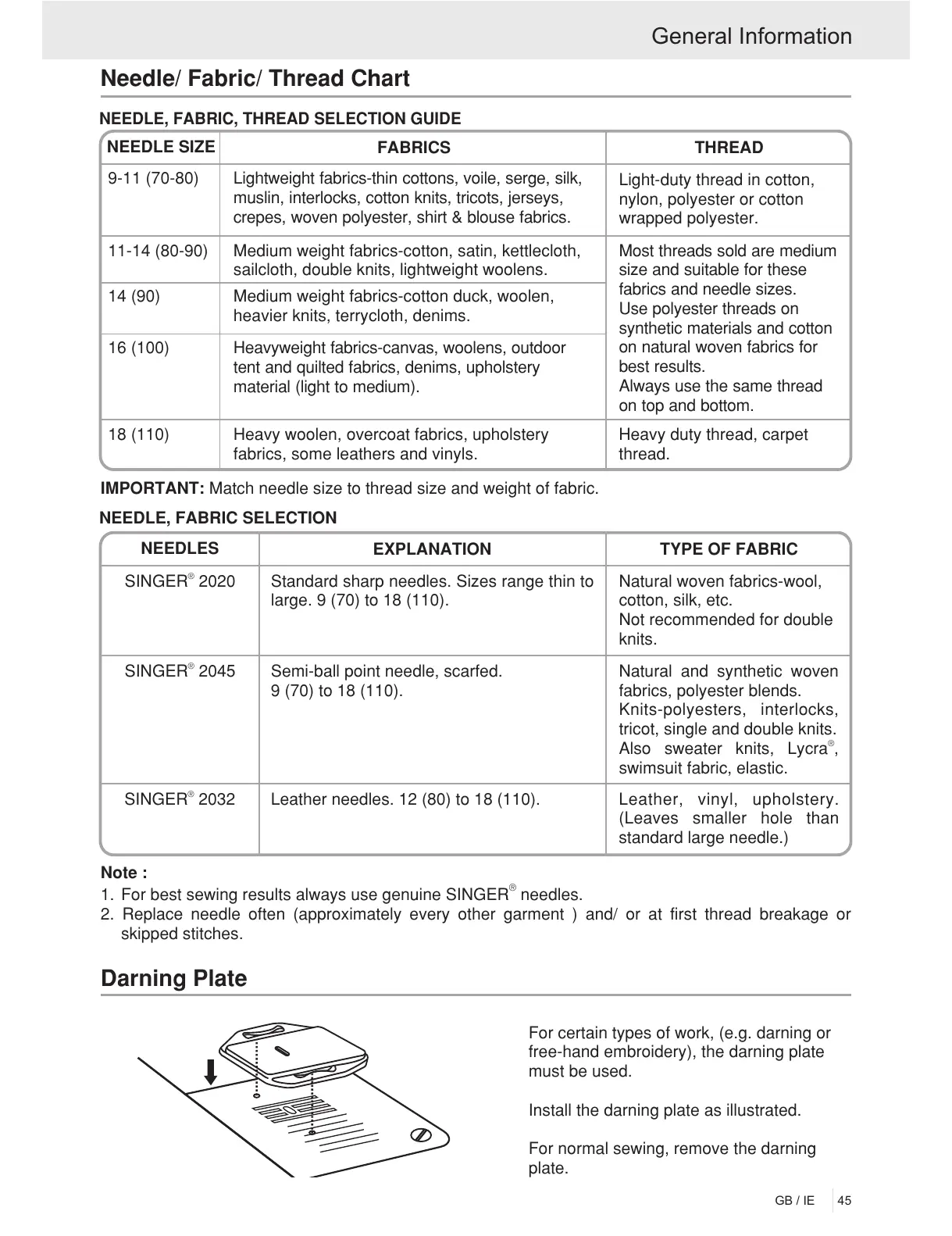 IMPORTANT: Match needle size to thread size and weight of fabric.