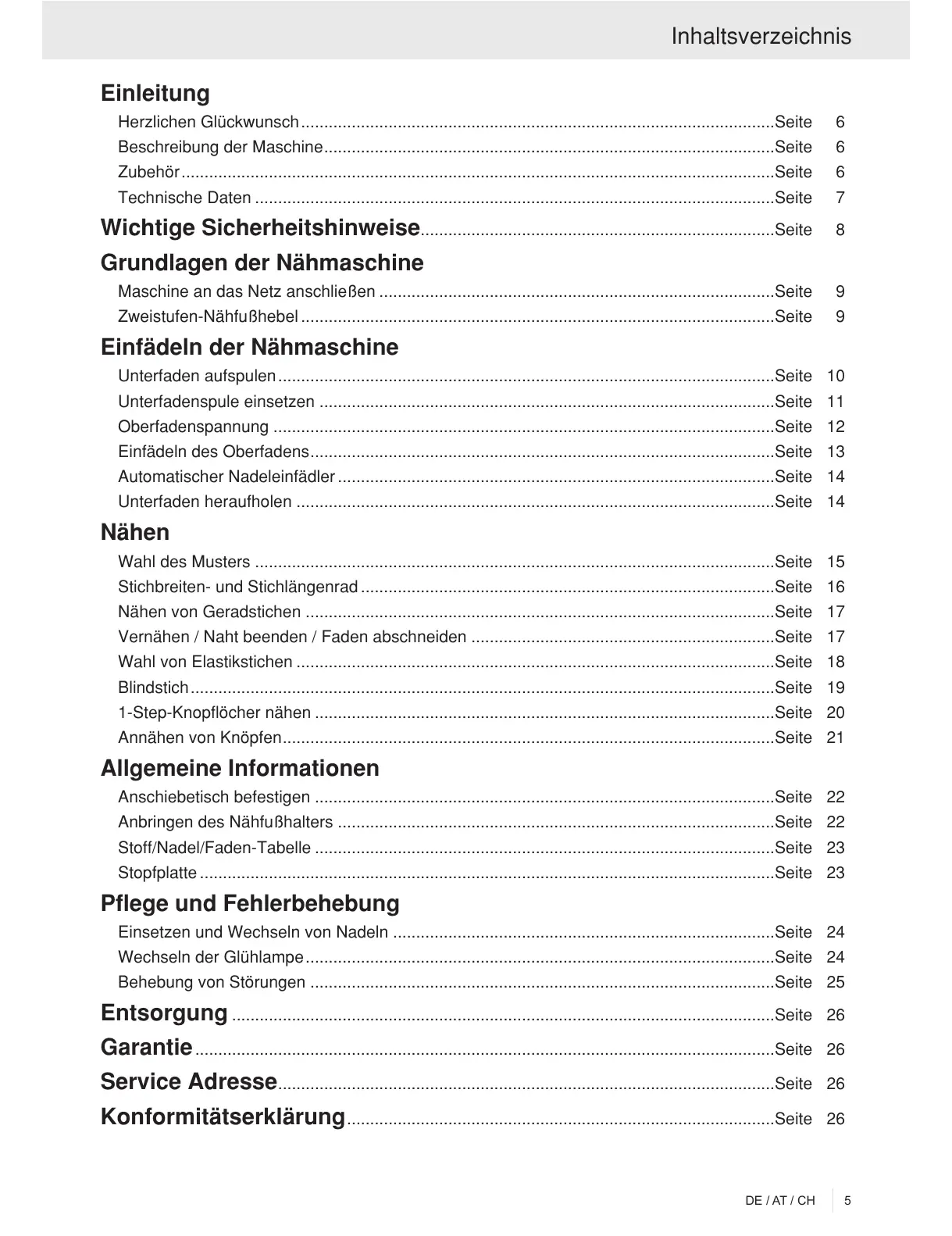 Stoff/Nadel/Faden-Tabelle ....................................................................................................Seite 23