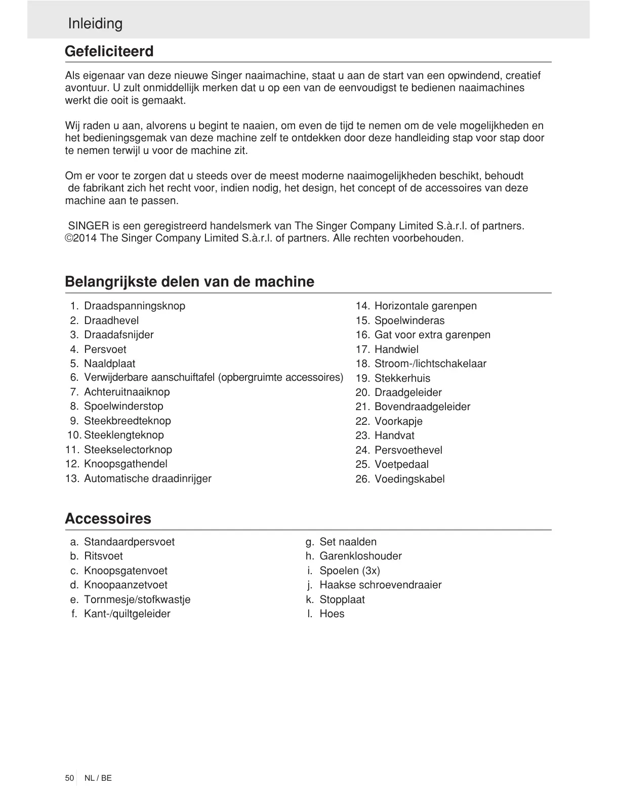 SINGER is een geregistreerd handelsmerk van The Singer Company Limited S.à.r.l. of partners.
