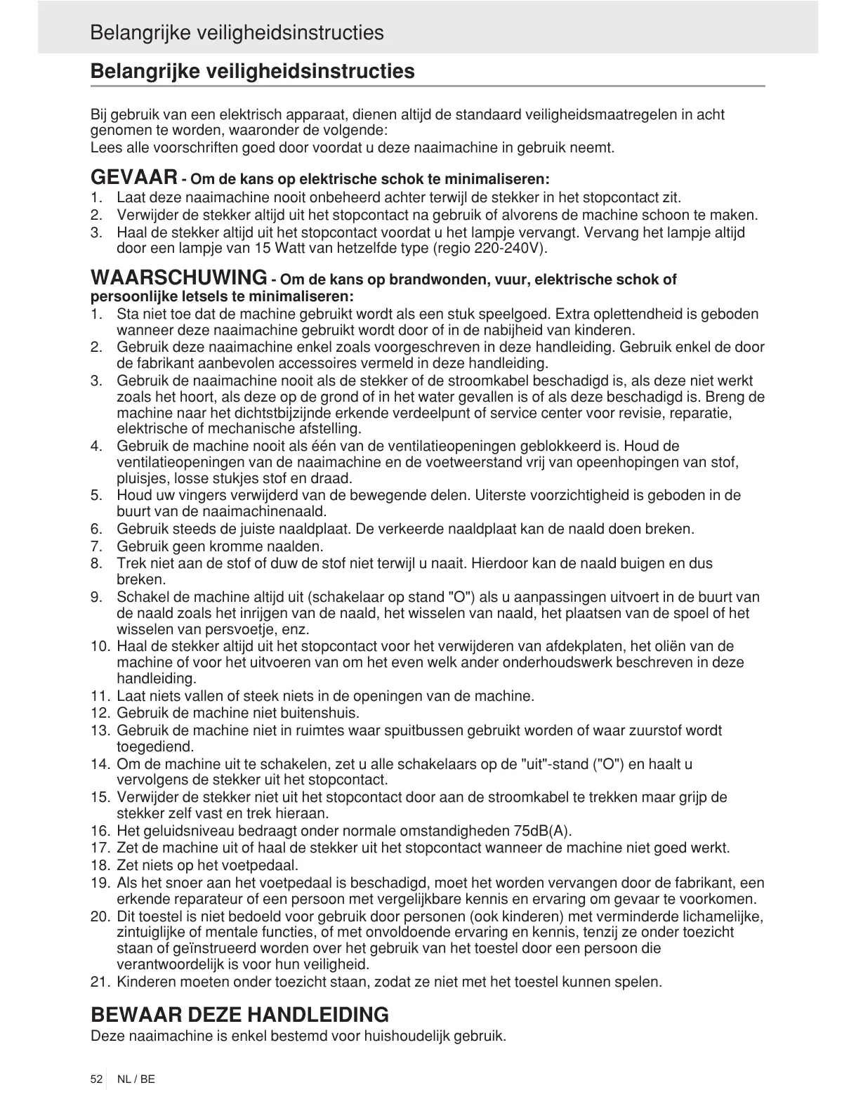 Lees alle voorschriften goed door u deze naaimachine in gebruik neemt.